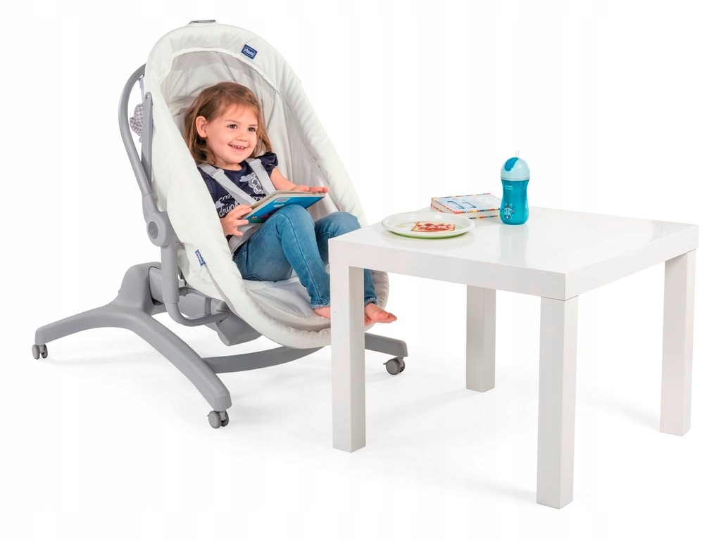 Радость от совместной трапезы с ранних лет! Наклоните его в сидячее положение, пристегните ремень безопасности ребенка и поднесите к столу. Благодаря регулировке высоты он идеально подойдет к любому столу.
