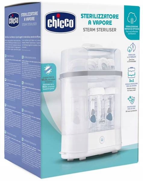 ПАРОВОЙ СТЕРИЛИЗАТОР CHICCO 3-В-1 незаменим в каждом доме, где будет жить новорожденный.