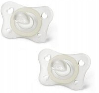 Мягкая соска, изготовленная из одного куска силикона. Он очень хорошо адаптируется к лицу ребенка и не вызывает кражи со взломом на коже. Смещение в бороду и нос обеспечивает достаточное пространство, чтобы не мешать дыханию. Соски сияет в темноте, поэтому, если он падает на пол ночью, вы можете легко найти его без необходимости освещения.