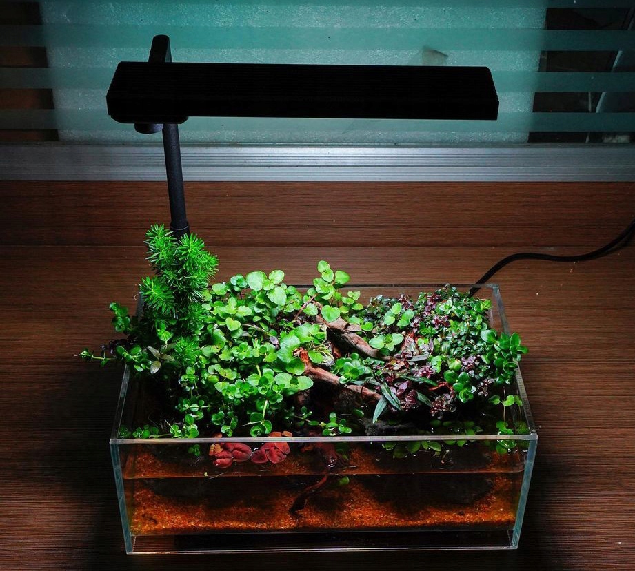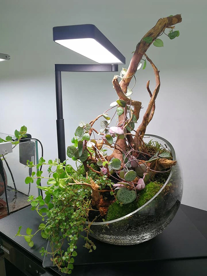 Стенд, посвященный светодиодному освещению C II. Это позволяет разместить светильник как рядом с резервуаром, так и под ним. Это удобное и практичное решение. В сочетании с нано-аквариумами или ваби-куса он создает чрезвычайно стильное и элегантное целое.