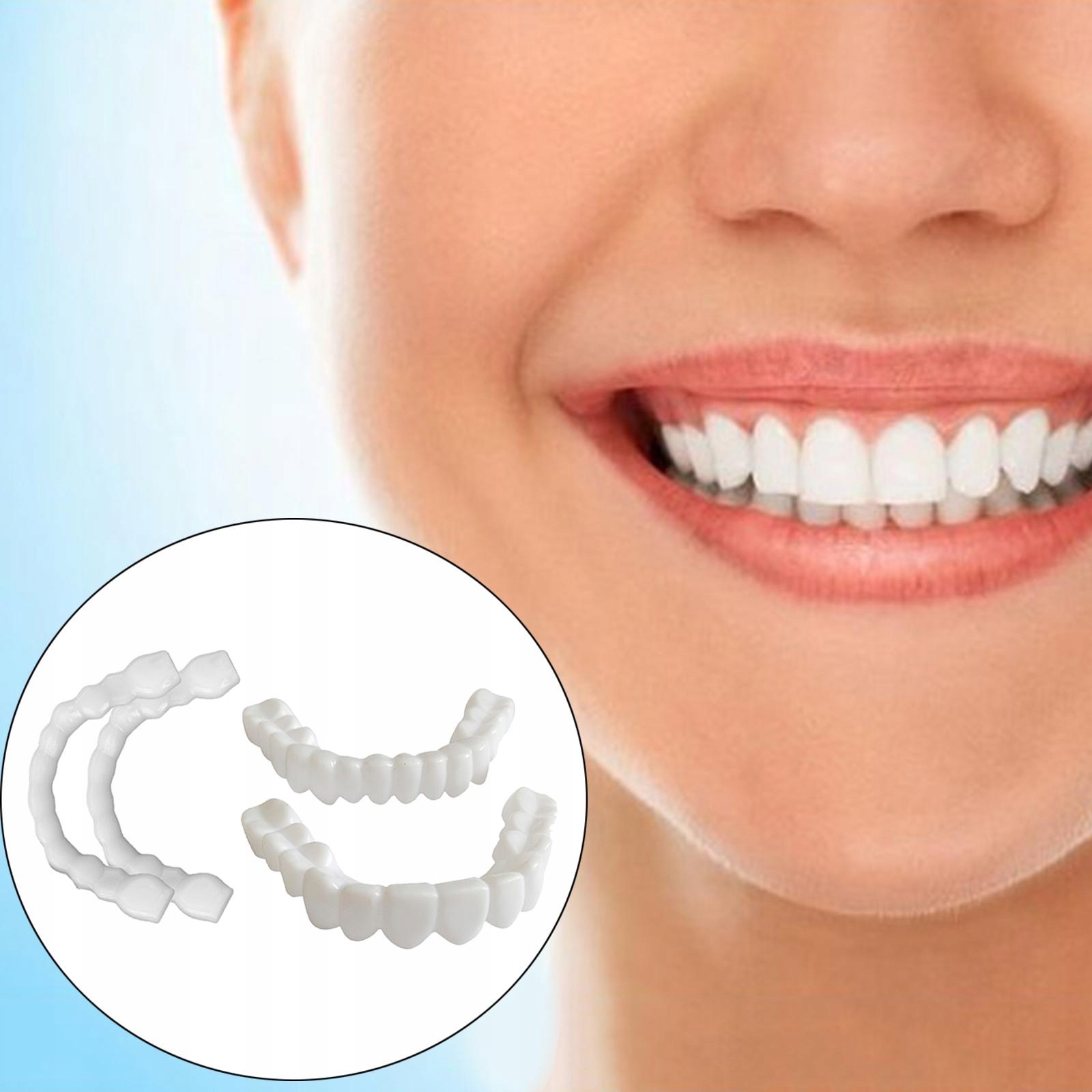 Выбор 6: 1 пара верхних нижних косметических накладок на зубы + 1 круглая коробка + 2 резиновые полоски