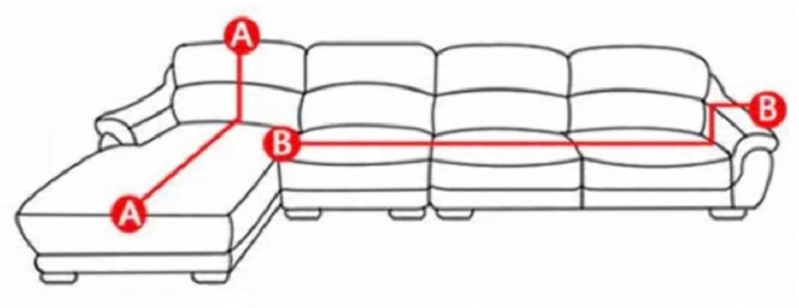 В случае углового дивана измерьте расстояние от точки A до точки A, а другую часть дивана от точки B до точка Bи выберите правильный размер