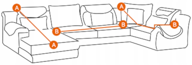 Чехлы идеально подходят для углового дивана. Пожалуйста, тщательно измерьте каждую часть угла в соответствии с инструкциями ниже.