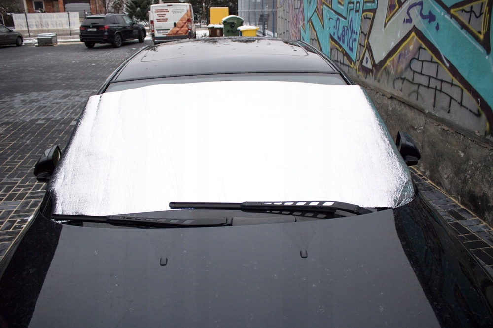Чехол изготовлен из водонепроницаемого материала, мягкого поролона, покрытого алюминиевой фольгой. Отражая солнечный свет в жаркие дни, он защищает салон автомобиля от нагревания. В свою очередь, зимой он защищает стекло от наледи и помогает убрать с него снег. Он не примерзает к стеклу.