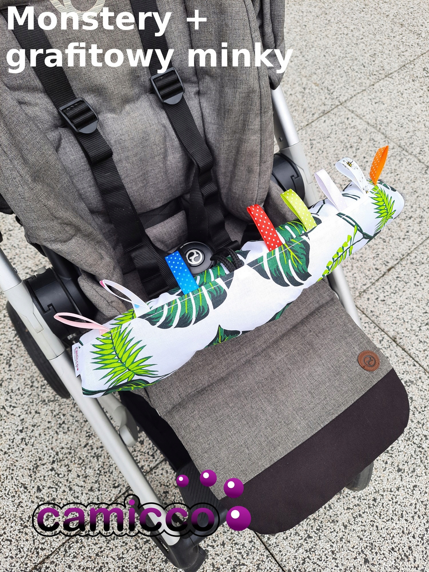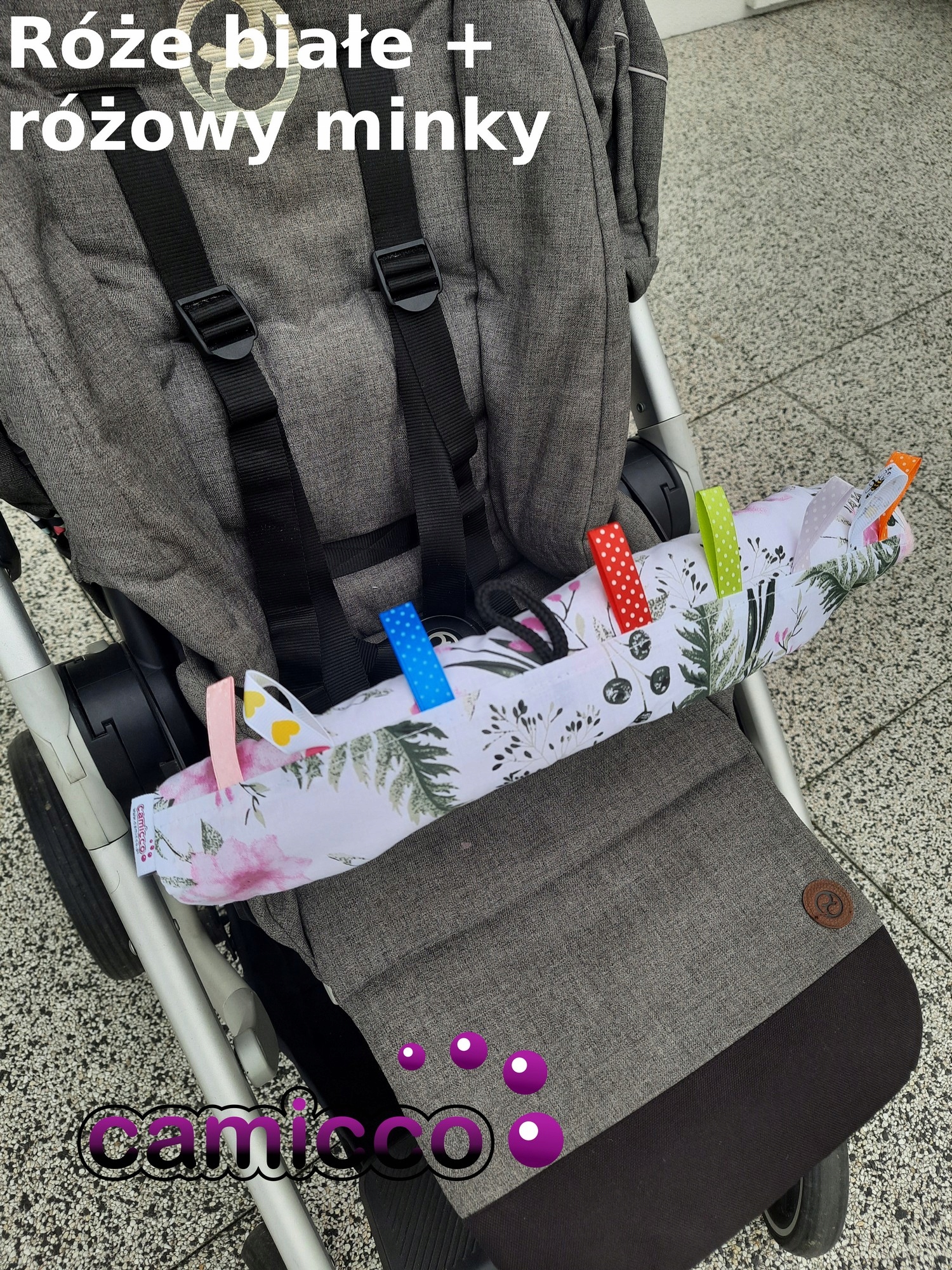 Подходит для большинства рулей (поручней), колясок или сидений, предлагаемых на польском рынке, с красочными этикетками, чтобы ваш малыш не скучал