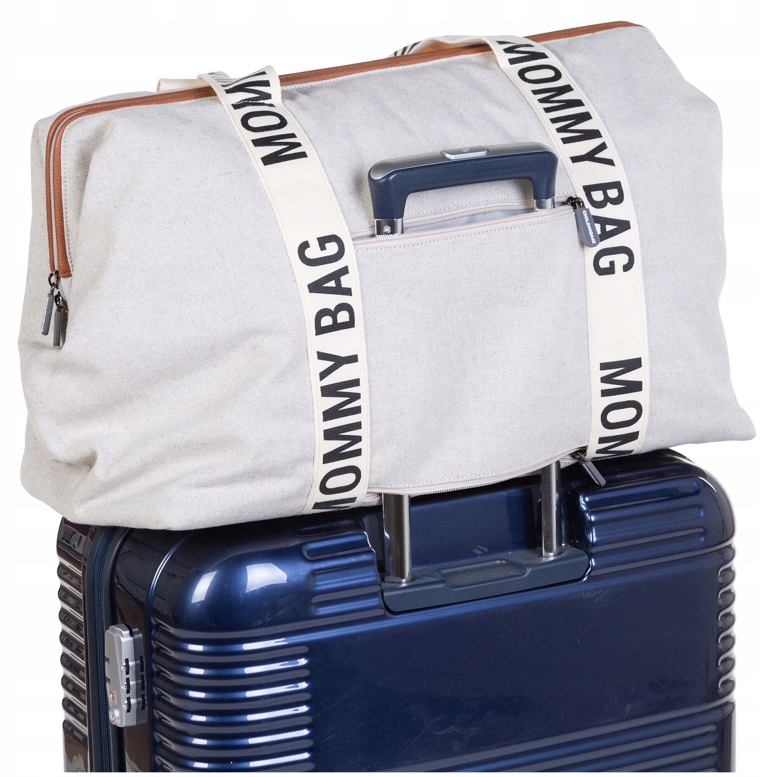 Сумка оснащена пеленальным ковриком и дополнительным плечевым ремнем. Упакован в авоську, что пригодится в путешествии, например, для грязной одежды. В боковом кармане сумки есть незаметное отверстие, через которое можно поставить ручку чемодана на колеса и свободно путешествовать на поезде или самолете.