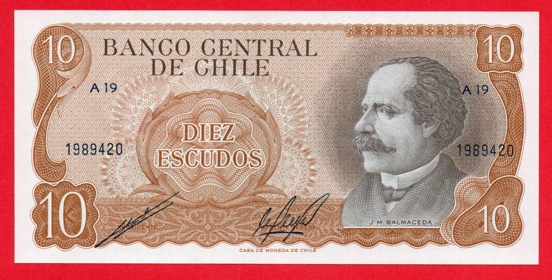 ЧИЛИ 10 ЭСКУДО 1967 P-143a UNC