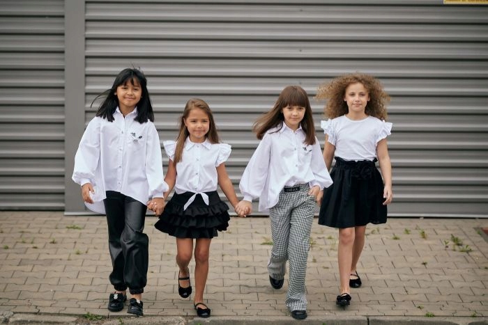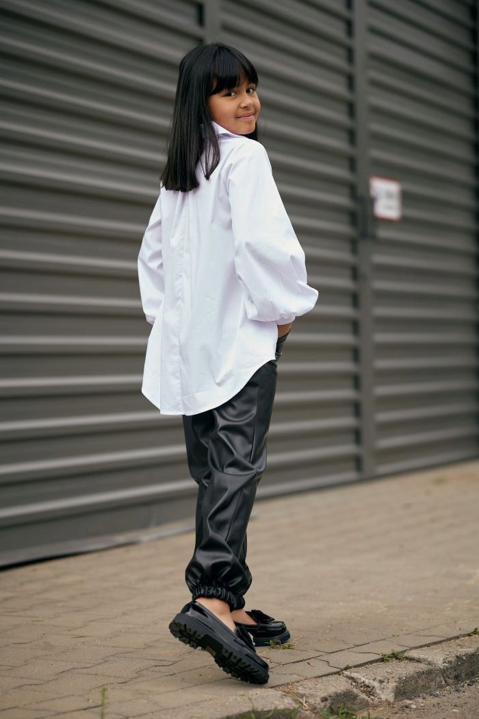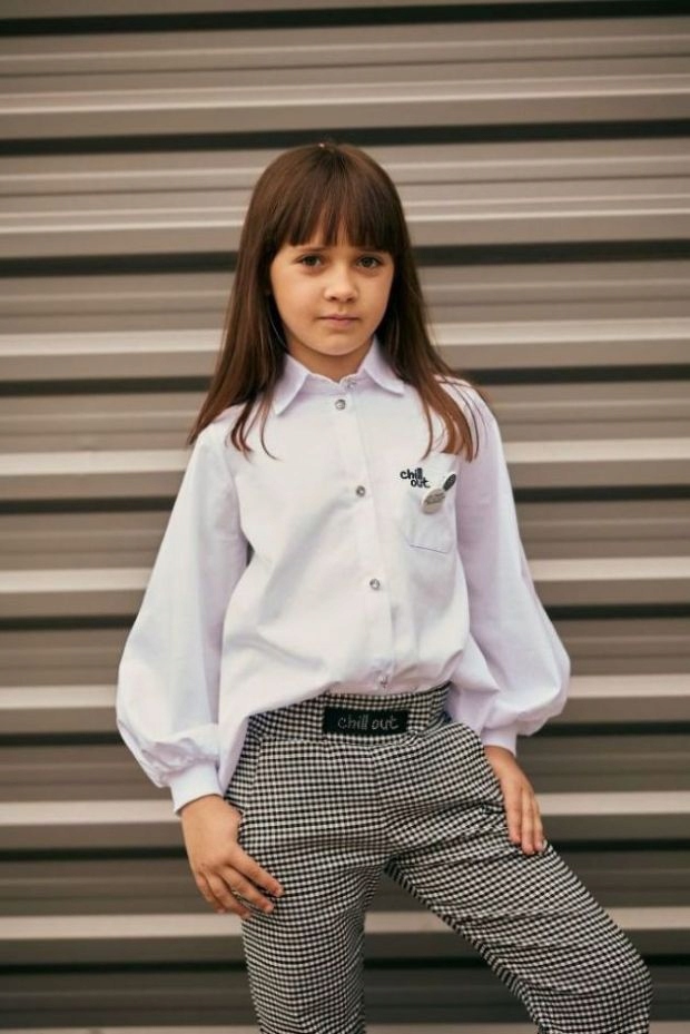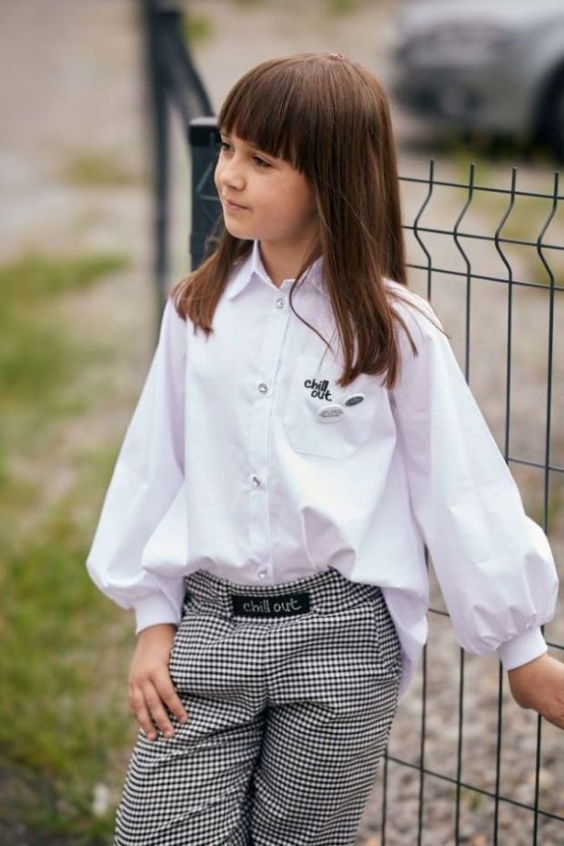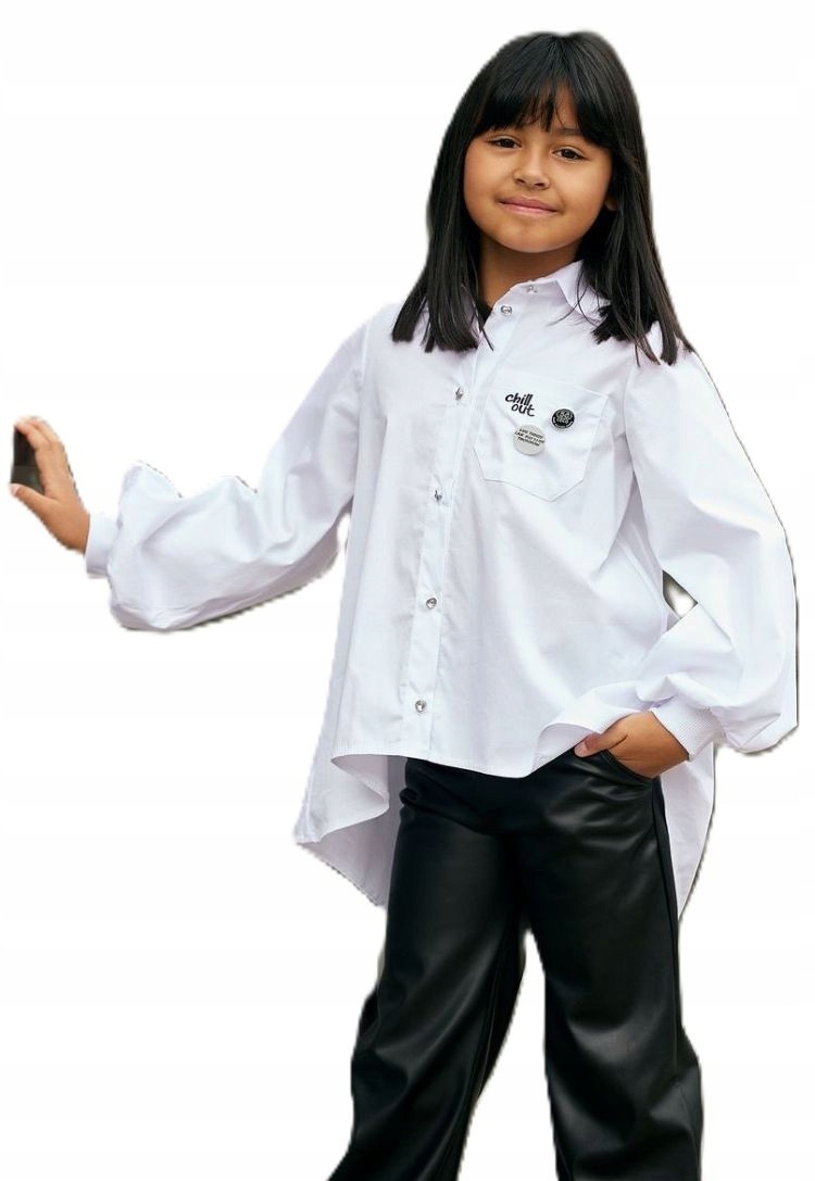 КРАСИВАЯ БЛУЗКА «CHILL OUT», БЕЛАЯ РУБАШКА, ПУГОВИНЫ 110–116.