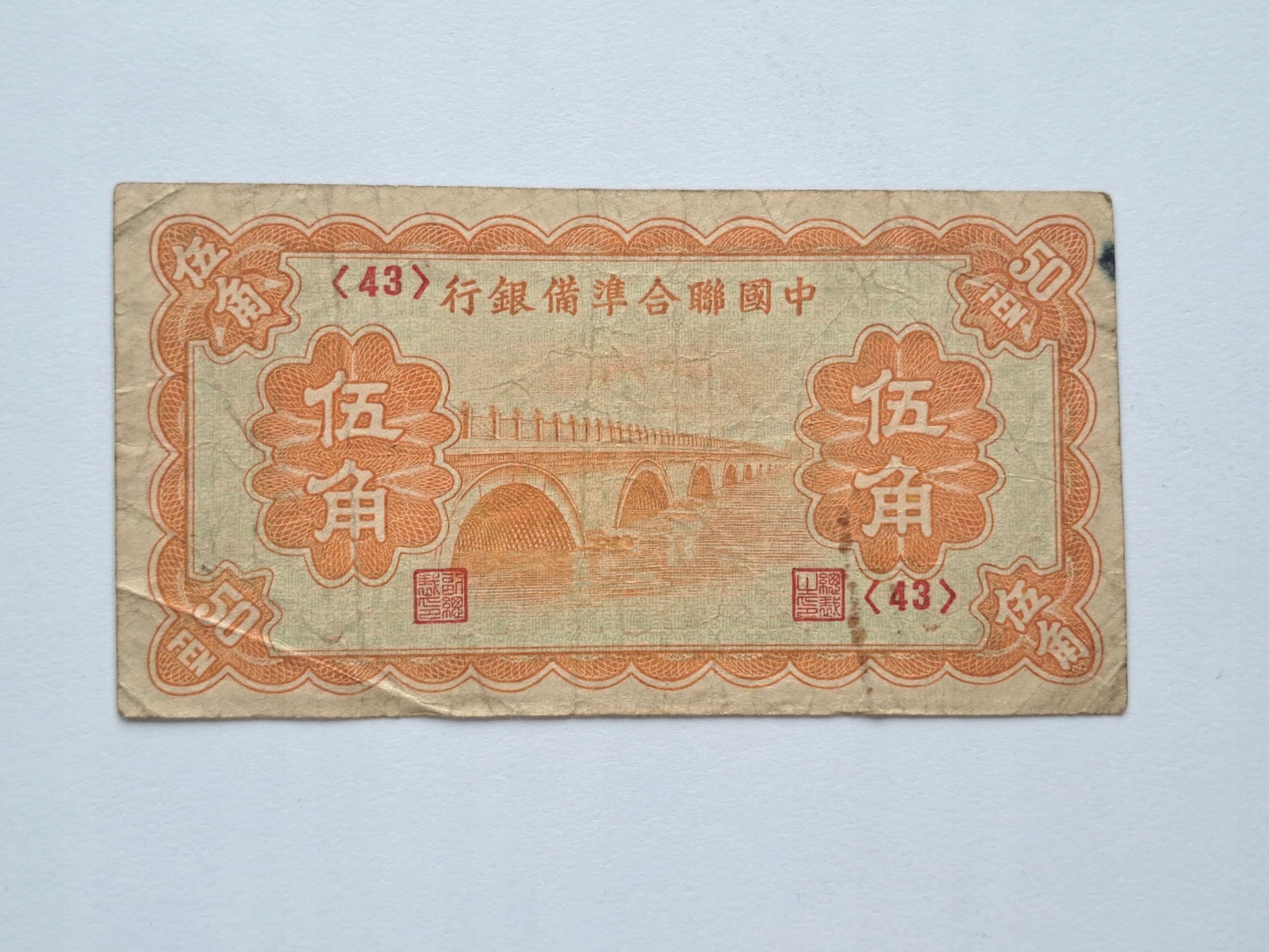 Банкнота China-Bank ND 50 фен 1938 года. Редкая!!!