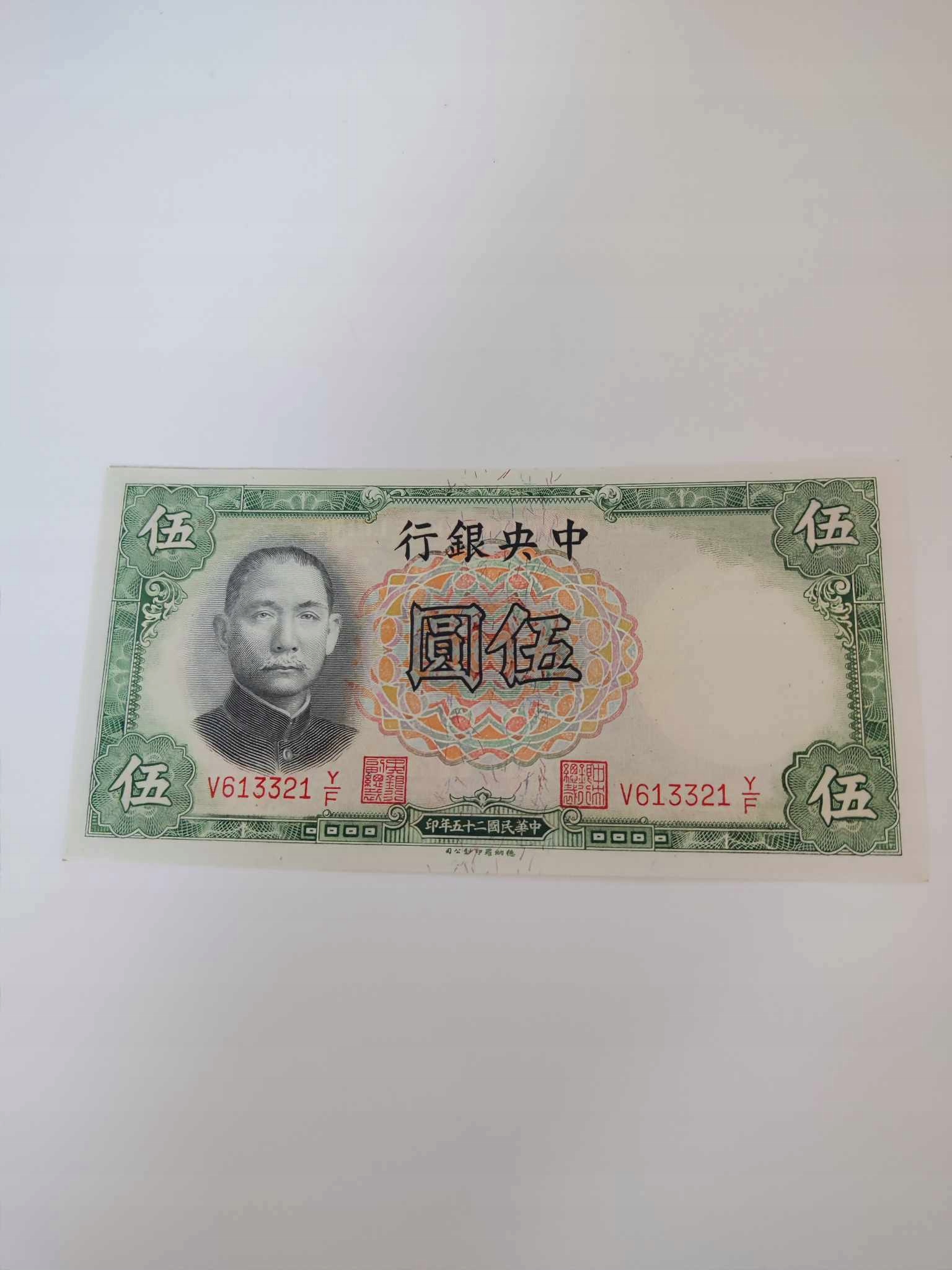 Chiny - 5 Yuan - 1936 - UNC