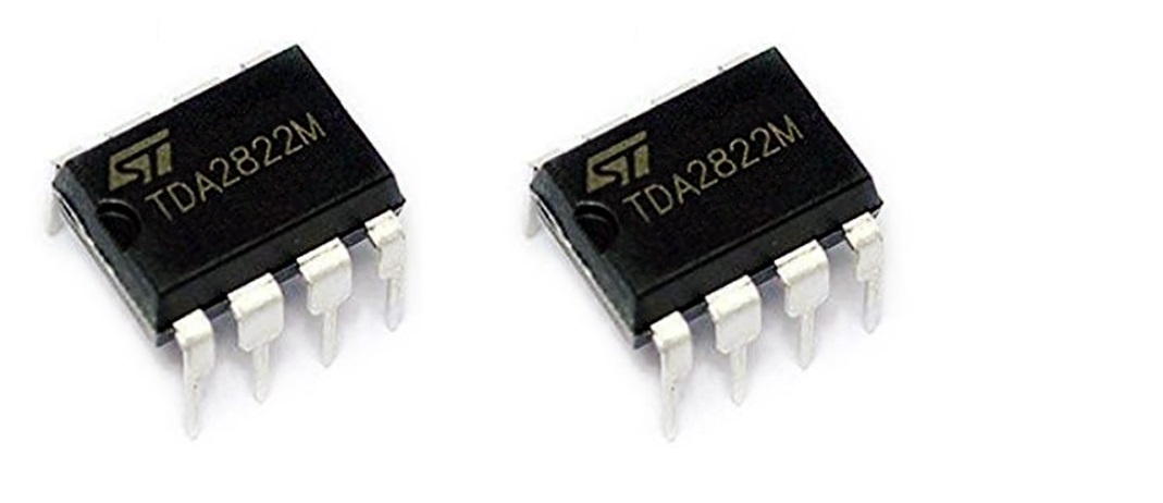Усилитель TDA2822 рассчитан на традиционную установку, а это значит, что он имеет корпус DIP8. Такой корпус позволяет монтировать систему посредством сквозной пайки на печатной плате.