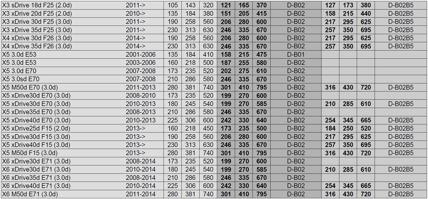 Приведенные в таблицах значения прибавки мощности и крутящего момента являются средними и могут изменяться в зависимости от заводских значений двигателя и его технического состояния.