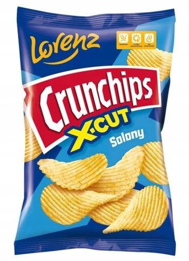 Crunchips X-Cut Salted — это классические картофельные чипсы, которые отличаются простотой и насыщенным хрустом. Это чипсы с волнистой структурой (X-Cut), что делает их более толстыми и хрустящими, чем стандартные чипсы.