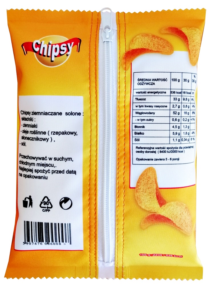 Пенал, представленный на аукционе, выполнен в форме чипсов со следующими вкусами: