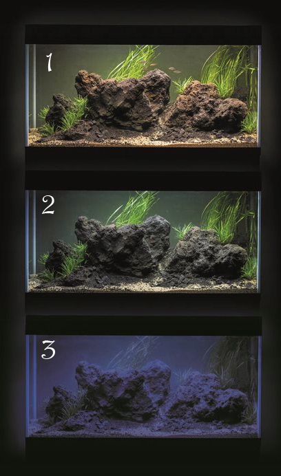 Модуль DAY&NIGHT освещения мощностью 14 Вт объединяет как дневное, так и ночное освещение, поэтому вы можете любоваться своим аквариумом и ночью!