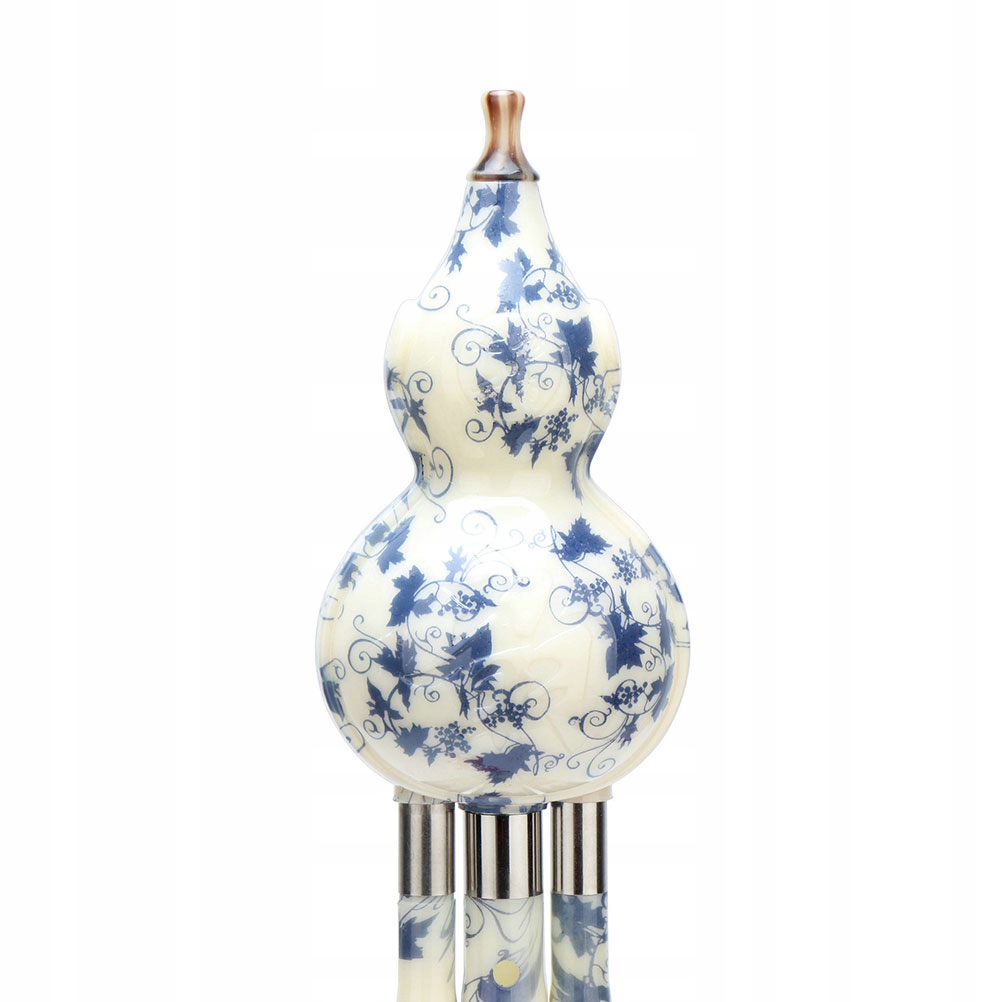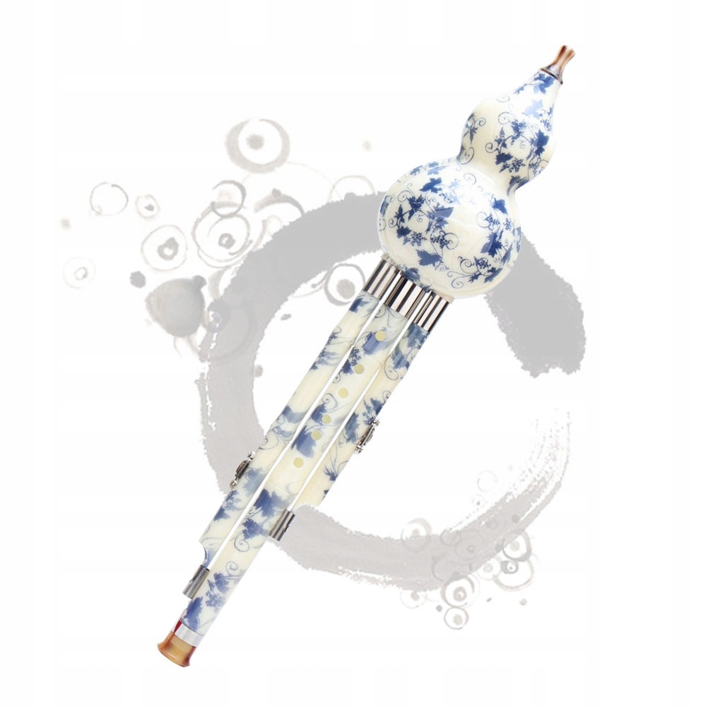 CHIŃSKA FLETNIA ETNICZNY INSTRUMENT Z BŁĘKITNO BIAŁĄ PORCELANĄ