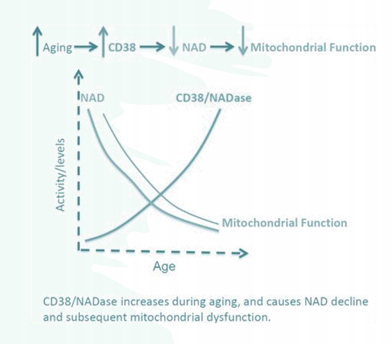 Благодаря своему противовоспалительному действию апигенин является ингибитором (химическое вещество, вызывающее снижение скорости химической реакции) Белок CD38, выработка которого (увеличивается с возрастом) связана с реакцией организма на воспаление, а повышенное присутствие которого истощает ресурсы НАД+ в организме — основной ресурс, необходимый для правильной регенерации ДНК и клеток (уровень которого снижается с возрастом). возраст) - что, как следствие, ускоряет старение организма.