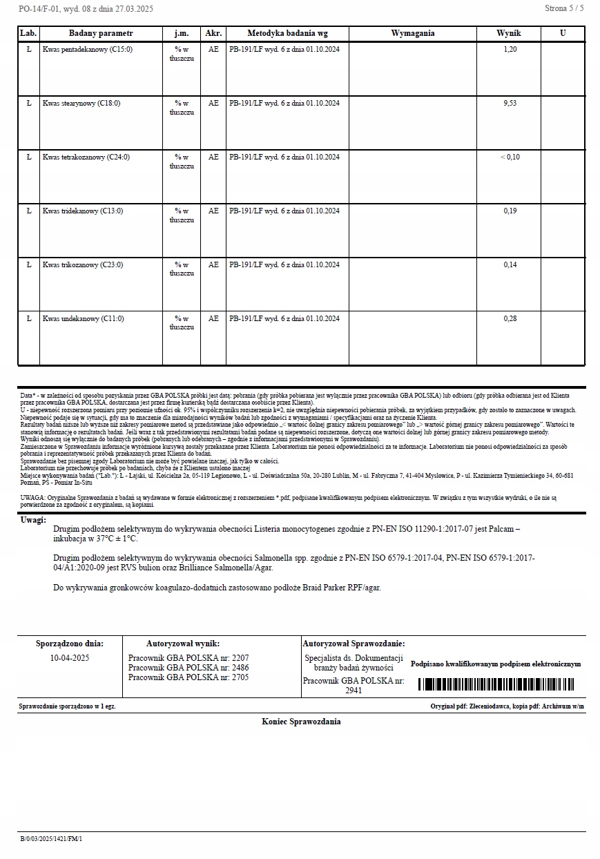Что делает наше гхи уникальным, так это то, что мы не полагаемся исключительно на традиции и процесс. Перед расфасовкой в банки каждый жир тщательно тестируется в независимой аккредитованной лаборатории GBA Polska. Проверяем на: