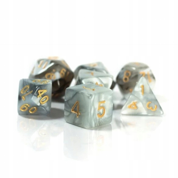 Набор игральных костей, то есть семь высококачественных игральных костей. Благодаря соответствующему балансу ими очень удобно пользоваться.
