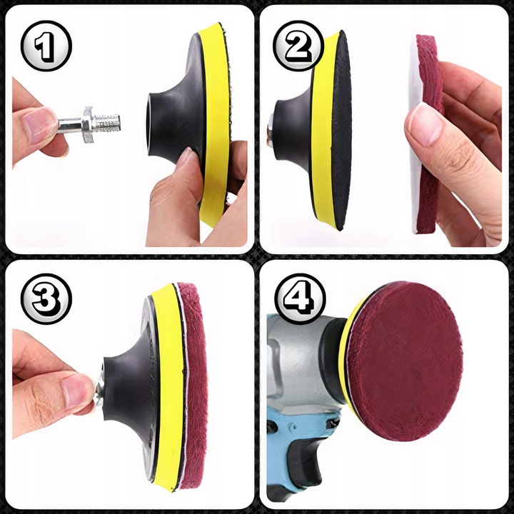 - Закрепленная липучкой + удлинитель стебля - полировки губ - это высококачественный продукт, который будет работать идеально при полировке различных типов покрытий краски . Каждая полировочная губка и непреклонная ткань прикрепляется липучкой к голове. Кроме того, набор включает в себя расширение раковины. Это расширение на 12 см используется для уборки с твердыми местами.