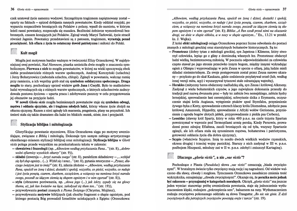 Gloria victis — прозаический эксперимент. Рассказчик романа – антропоморфизированный лес. Деревья рассказывают Ветру историю братской могилы январских повстанцев. Автор хотел напомнить о абсолютной жертве повстанцев, о которой потихоньку начинала забывать обрусевшая молодежь.