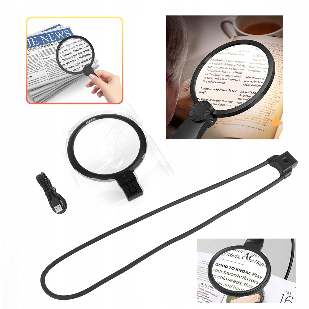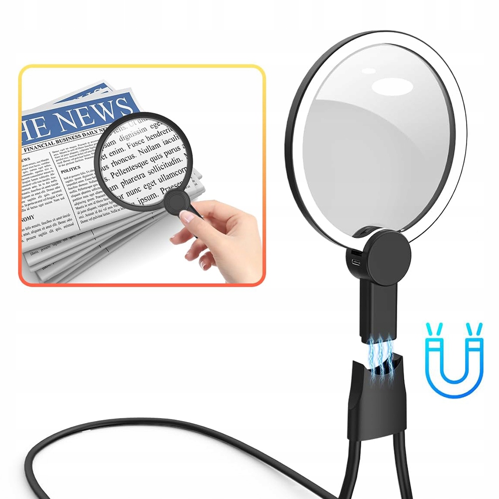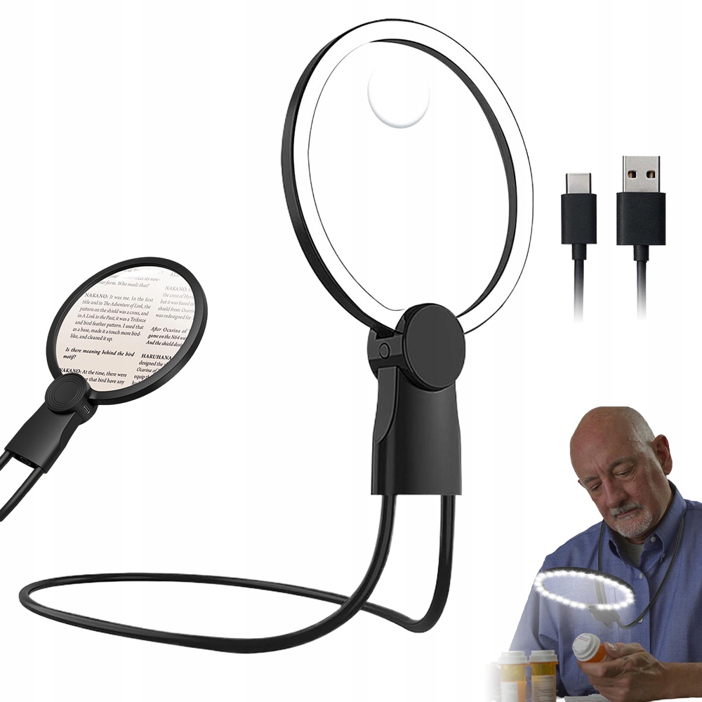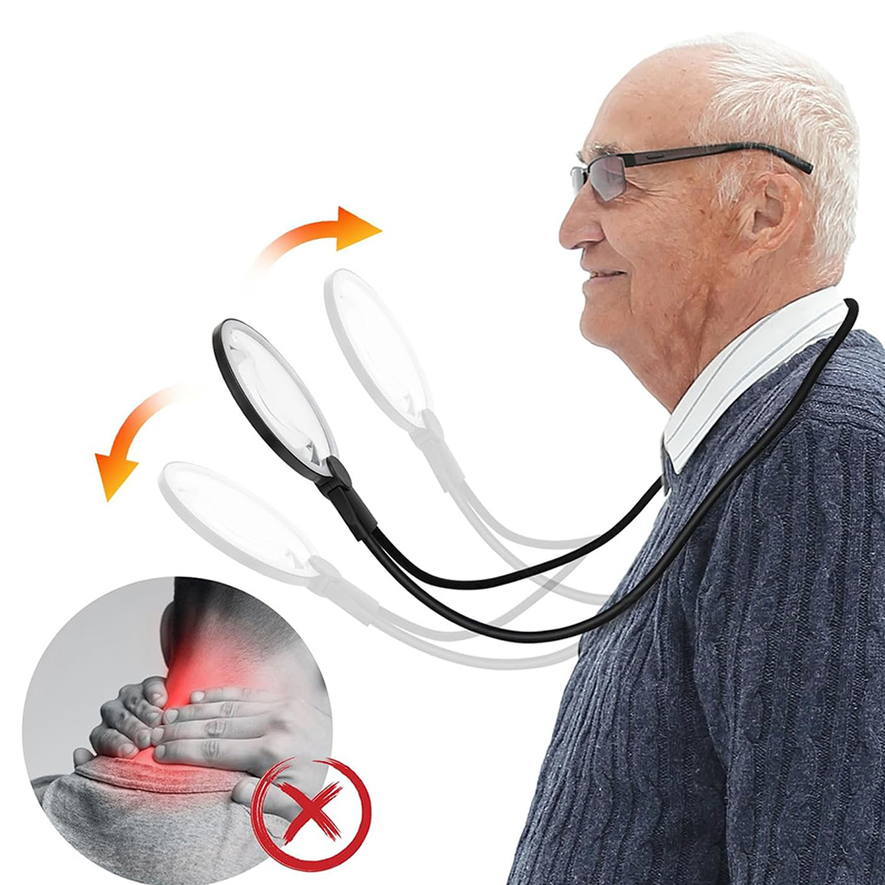 - 🎀 Конструкция шейного ремешка для использования устройства без помощи рук: Регулируемая мягкая подставка позволяет носить устройство на шее, оставляя руки свободными для хранения книг и инструментов, что делает его чрезвычайно удобным при чтении, работе и ремонте мелкие предметы.
