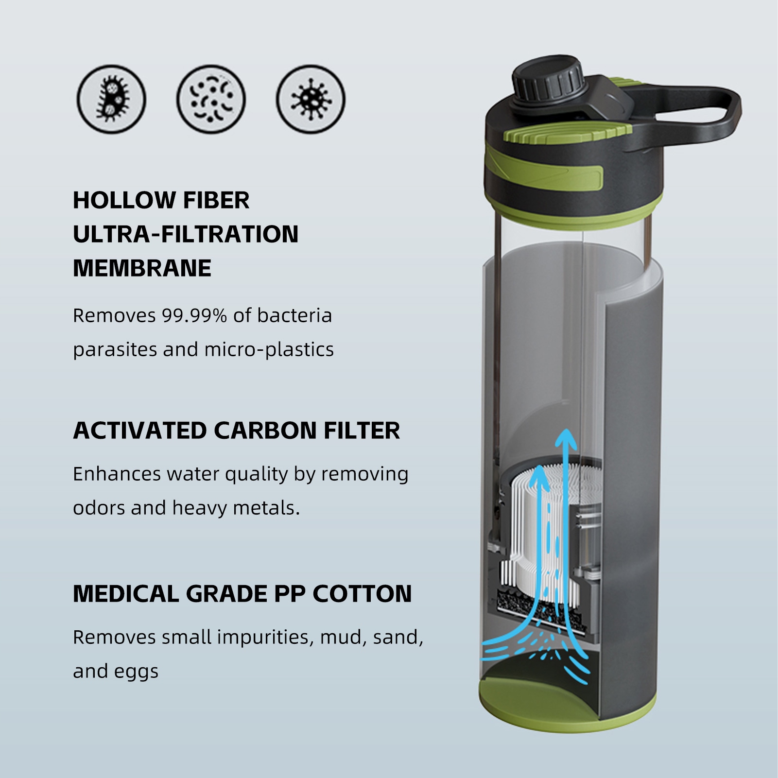 1. Фильтрация с точной: испытать фильтрацию с нашей бутылкой для фильтра для воды, удаление 99,99% бактерий и паразитов в безопасную питьевую воду.