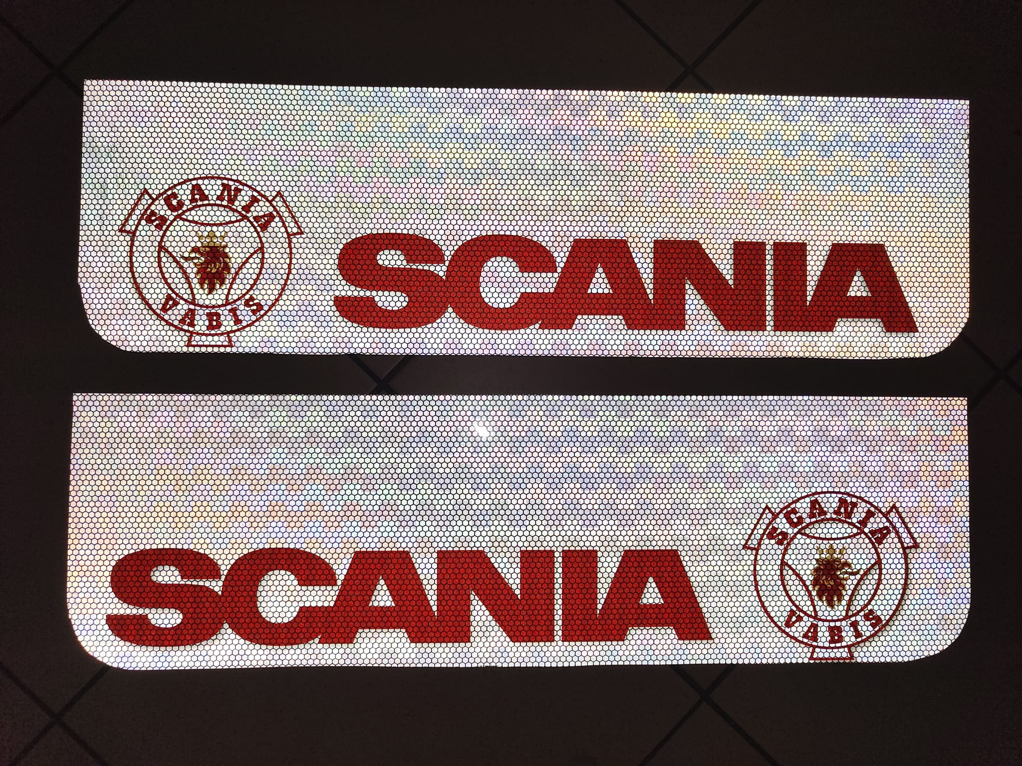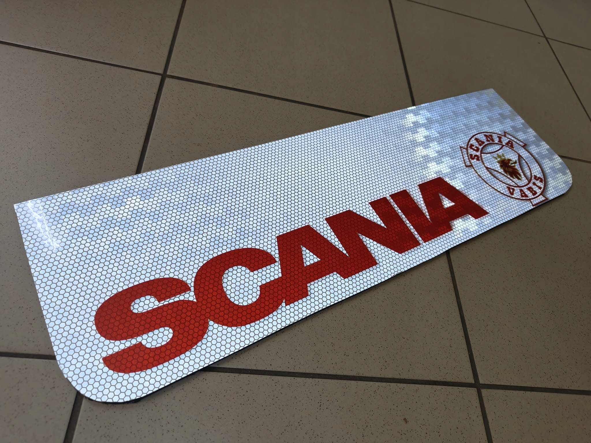 Chlapacz SCANIA VABIS czerwony 60x18cm ODBLASK odblaskowy świecący