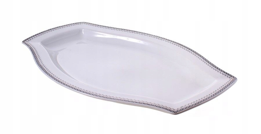 Фарфоровое блюдо с геометрическим декором. Произведен на заводе столового фарфора «Цмелев» в Цмелёве. 1960-е годы