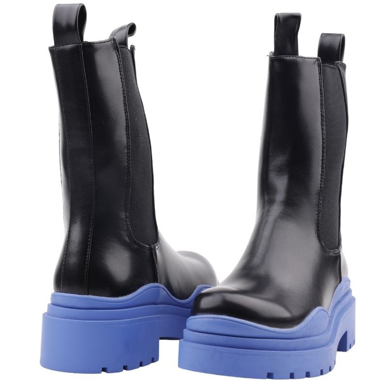 Ботинки на толстой яркой подошве со стильными вырезами. Верхняя часть выше лодыжки оснащена резиной с обеих сторон. Лента, пришитая сзади, облегчает надевание обуви. Изготовлен из экокожи, слегка утеплен внутри.
