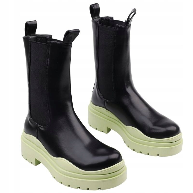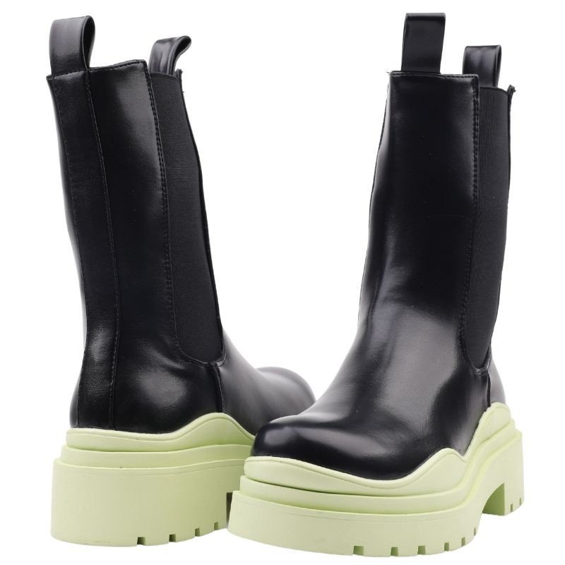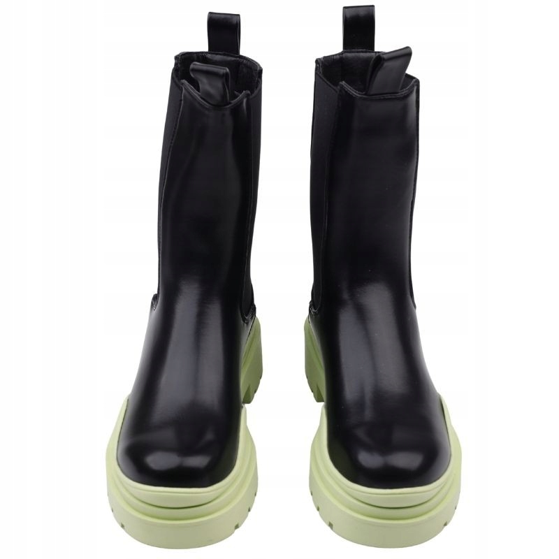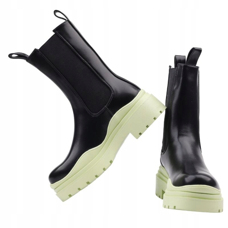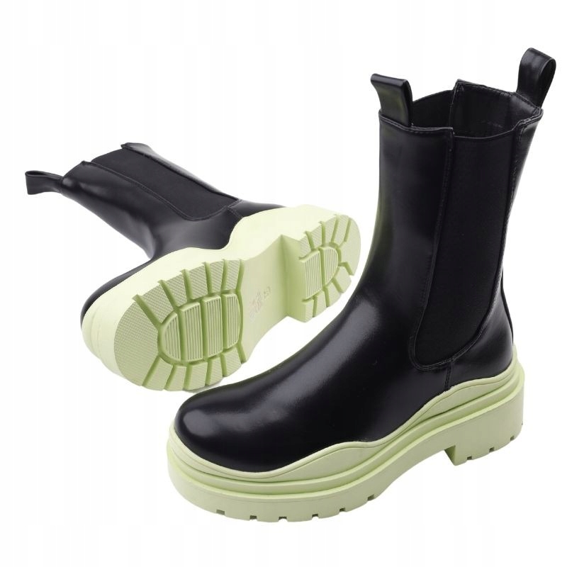 Ботинки на толстой яркой подошве со стильными вырезами. Верхняя часть выше лодыжки оснащена резиной с обеих сторон. Лента, пришитая сзади, облегчает надевание обуви. Изготовлен из экокожи, слегка утеплен внутри.
