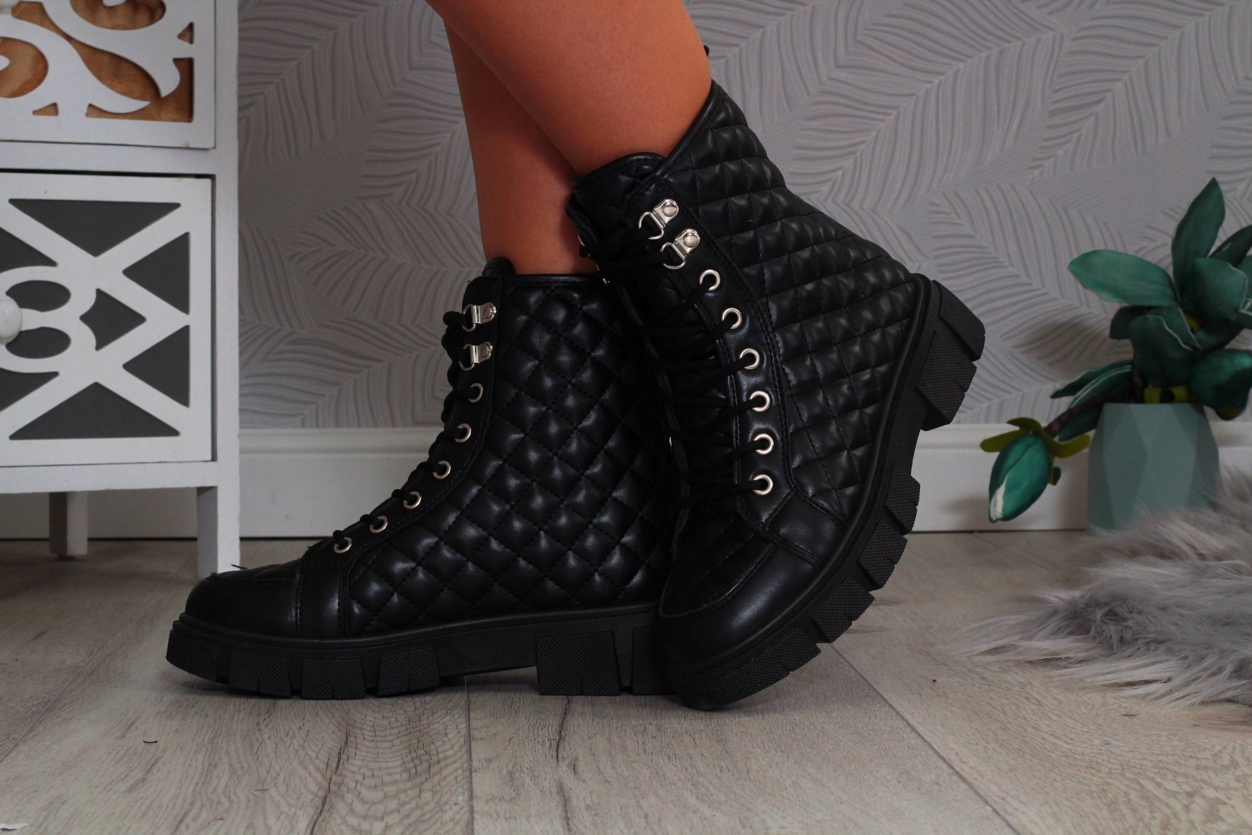 Женские черные ботильоны без шнуровки со стеганой отделкой. 🖤У них есть утеплитель — идеально подходит для зимы и холодного времени года. 🔥Ботинки без шнуровки, на шнуровке. Устойчивая подошва хорошо амортизирует ногу. Последняя коллекция 2022 года! 💯