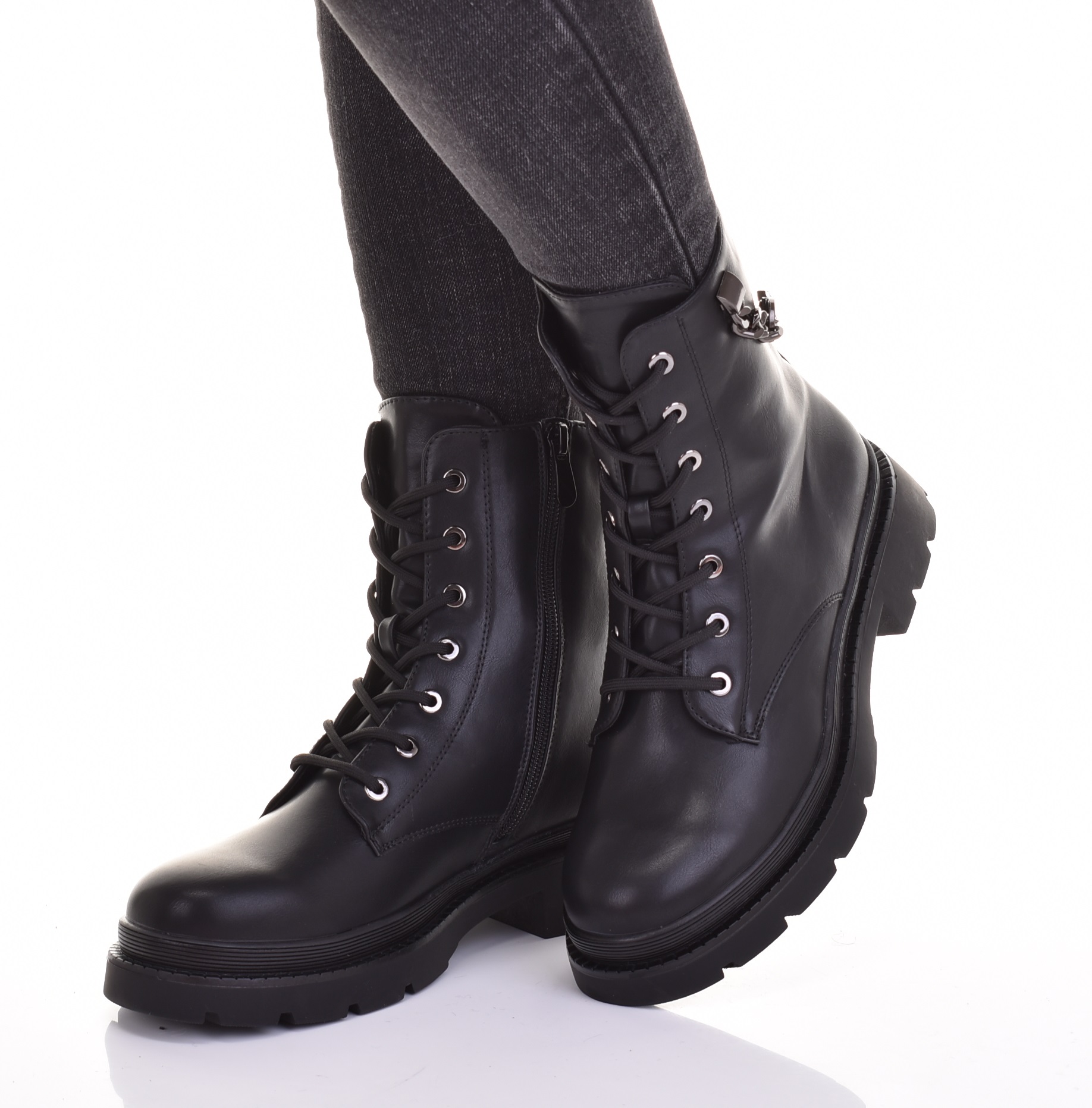 БОТИНКИ ЖЕНСКИЕ УТЕПЛЕННЫЕ НА МОЛНИИ, ЭКО-КОЖА, ЧЕРНЫЕ, МОДНЫЕ