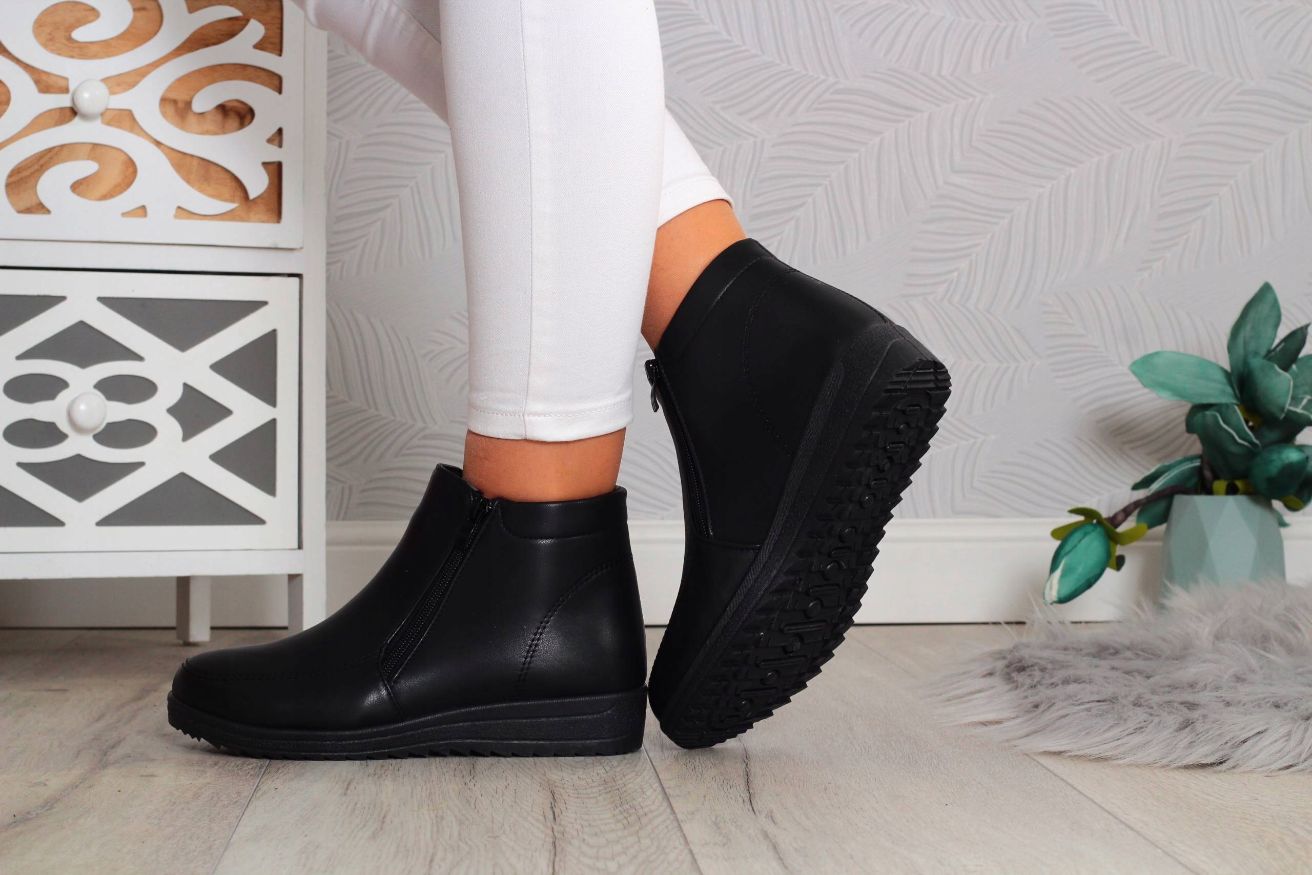 Женские ботинки черного цвета.🖤 Имеют меховой утеплитель – идеально подходят для зимы и холодного времени года.❄ Легко надеваются – застегиваются на две молнии. 🔥Низкая устойчивая подошва обеспечивает хорошую амортизацию стопы и комфорт использования. 💯 Простой дизайн дополнит многие стили ❗