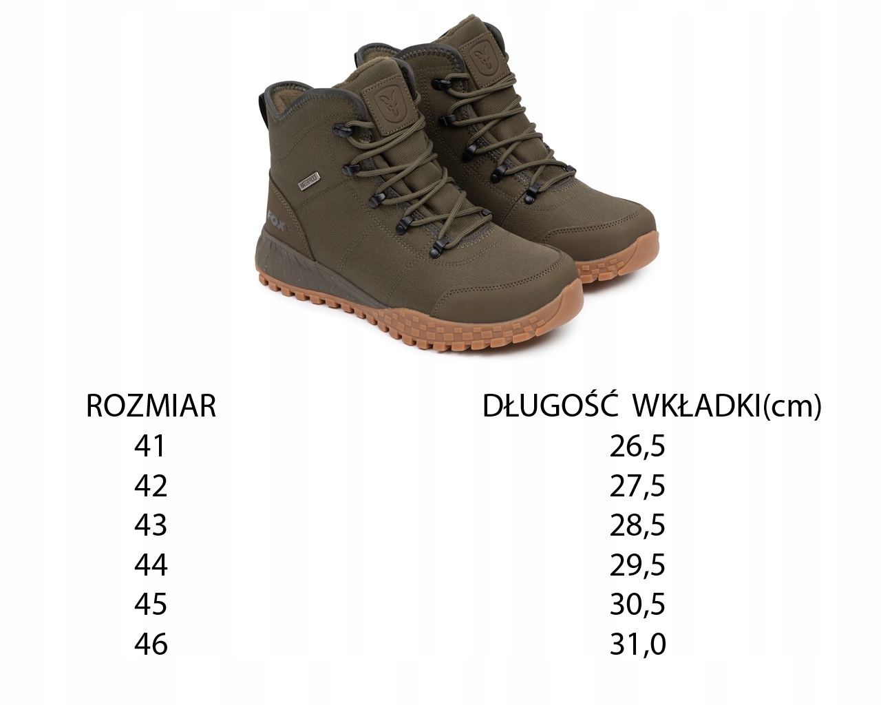 - Ботинки Fox Khaki V2 — отличный выбор для каждого ценящего рыболова комфорт, долговечность и надежность в сложных полевых условиях.