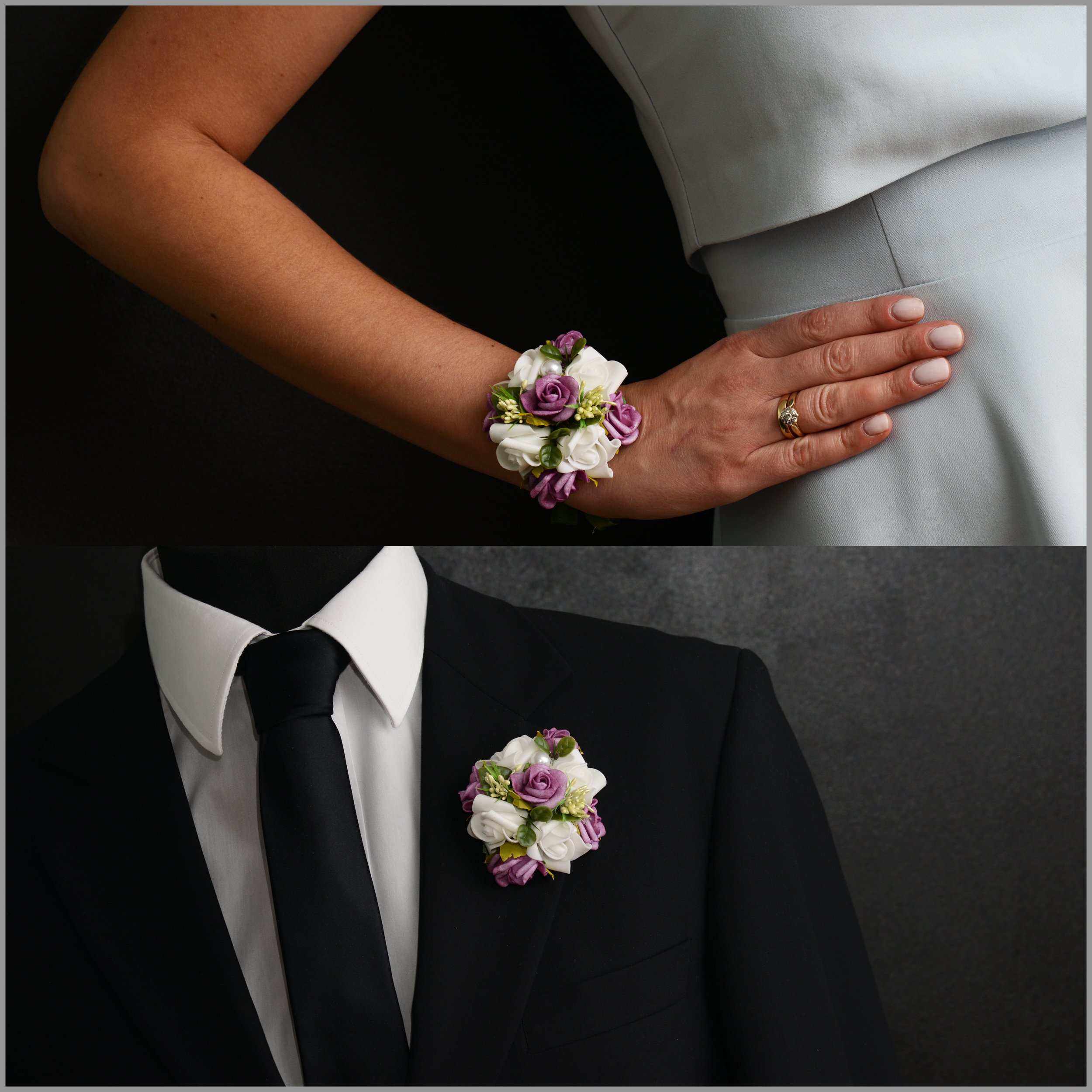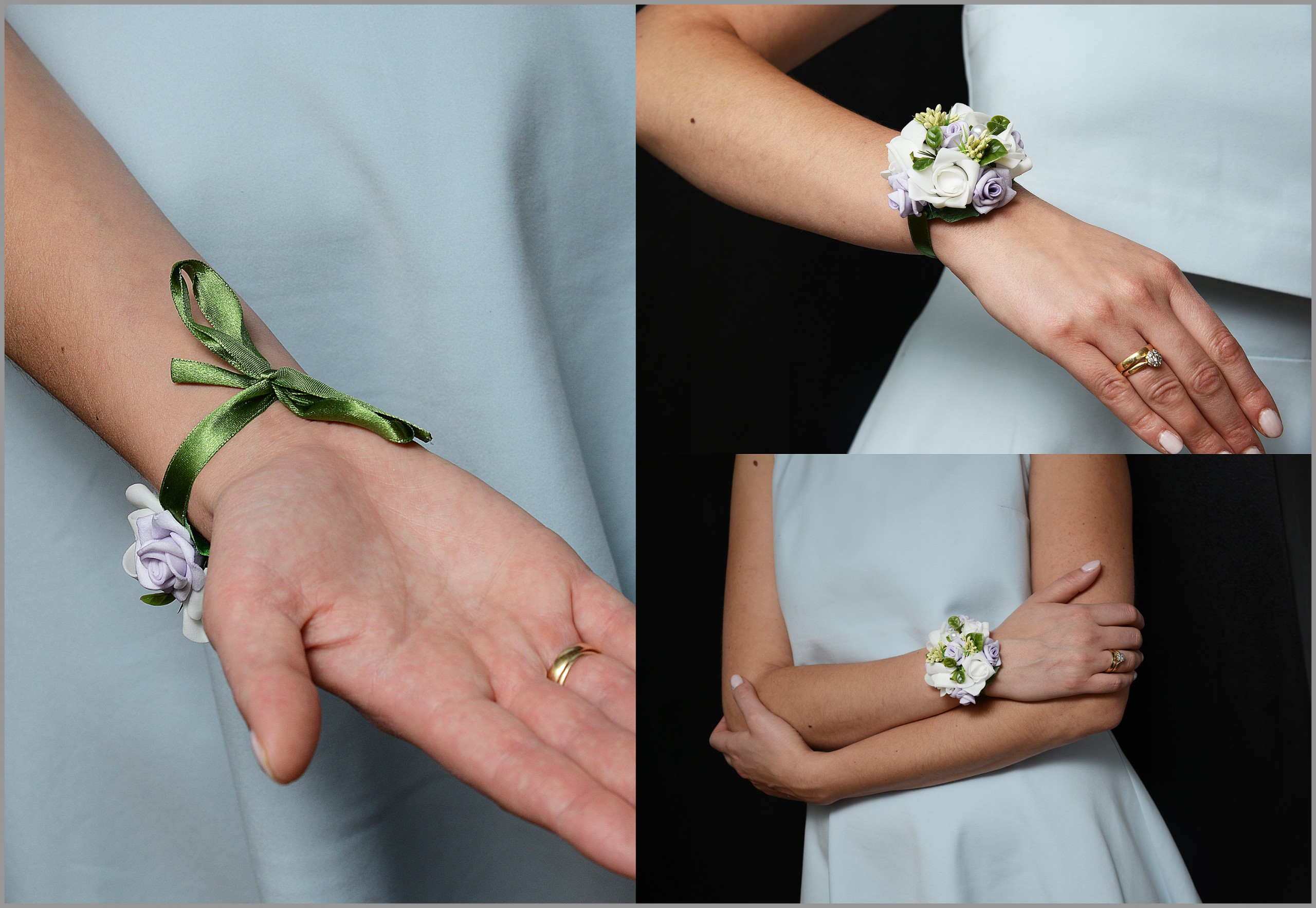 Значки имеют удобное крепление в в форме булавки, букеты имеют ленту для завязывания на руке.