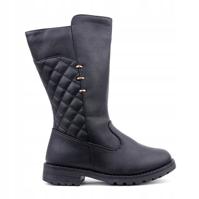 Ботинки для девочек, на плоской подошве и с протектором. Верх выше, доходит ниже колена. Изготовлен из экологической кожи, украшен модной стежкой сбоку. Застегивается изнутри на удобную молнию. Высокоутепленные ботинки с имитацией овчины. Они понравятся каждой маленькой леди!
