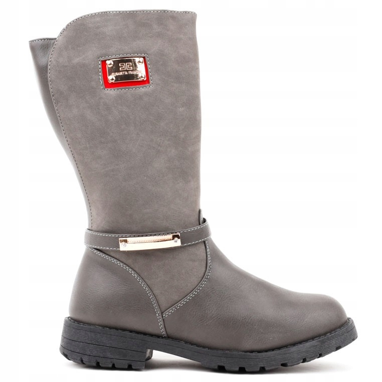 Сапоги для девочек на плоской подошве и протекторе. Верх выше колена. Изготовлен из экологической кожи. Украшен узкой полоской вокруг щиколотки. Застегивается изнутри на молнию. Изолированный. Модные ботинки будут отлично смотреться с пальто.