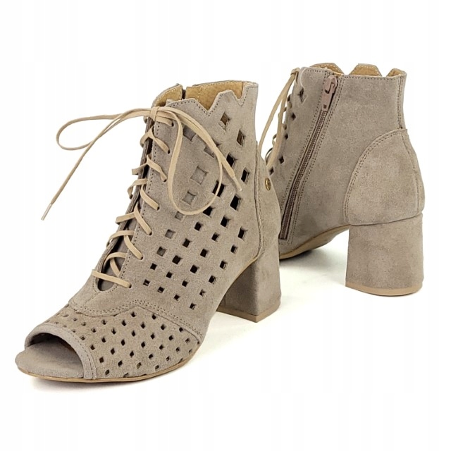 Оригинальные и модные ажурные женские сапоги из Польши знаменитый бренд Maciejka. Верх изготовлен из высококачественная натуральная бархатная кожа бежевого цвета. Мягкий, удобная стелька изготовлена из натуральной кожи. Подкладка кожаная. естественный. Ботинки застегиваются на молнию сбоку и шнуруются. Тучность Ф1/2. Каблук высотой 6 см. Подошва легкая и прочная и гибкий. Модный, летний стиль и известный бренд – гарантия. стиль и качество.