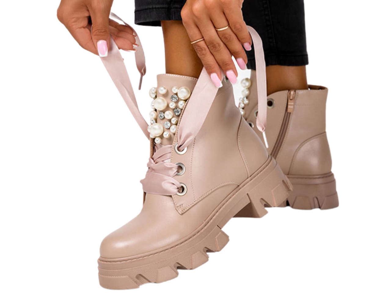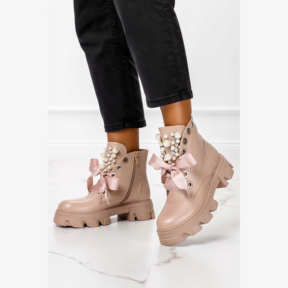 БОТИНКИ ЖЕНСКИЕ НА ПЛАТФОРМЕ С ЖЕМЧУГОМ, ЛЕНТА 39