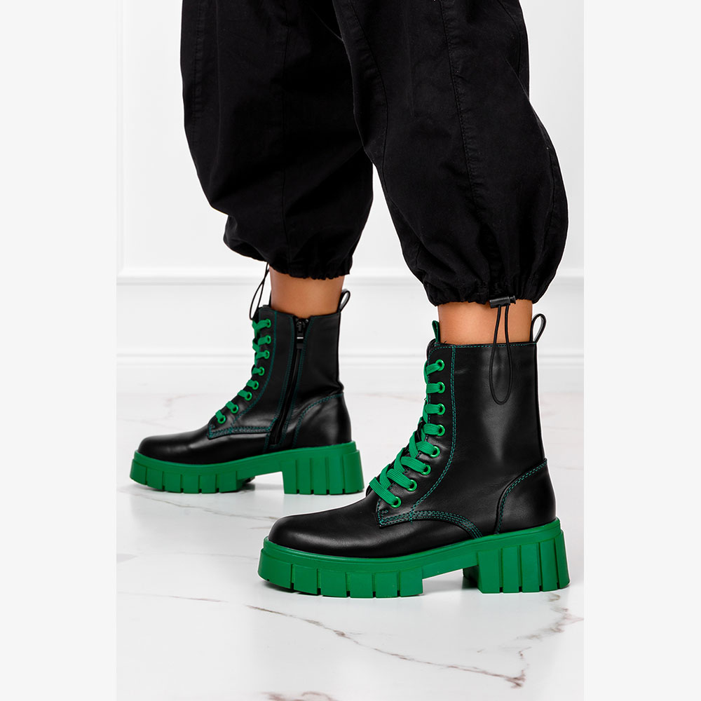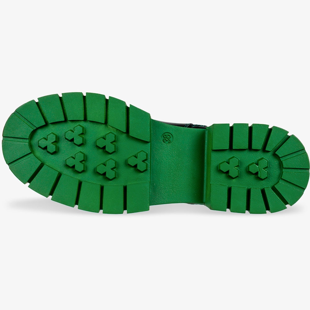 Черные женские рабочие туфли, модель ER22WX6-BG, изготовлены из высококачественной экологической кожи, что гарантирует отличное качество и плотное прилегание к ноге. Эти невероятно стильные черные ботинки – настоящая находка для любителей моды и оригинальных решений в области обуви. Они не только выглядят элегантно, но и придают всему образу немного экстравагантности. Однако именно зеленая платформа, эффектно контрастирующая с черной, придает ботинкам неповторимый характер. Шнурки, соответствующие цвету подошвы, переплетаются с зелеными люверсами, придавая всей модели современный и слегка роковый вид. Они также обеспечивают корректировку и корректировку индивидуальных предпочтений. Кроме того, боковая молния значительно упрощает надевание. Внутренняя часть ботинок отделана мягким материалом, что гарантирует комфорт при ношении. Кроме того, твердая подошва обеспечивает хорошую амортизацию, а это значит, что в них можно проводить много часов, не жертвуя комфортом. Это идеальный выбор для тех, кто хочет выразить свою индивидуальность посредством моды. В магазине Casu вы найдете множество предложений, которые придадут характер даже самым сдержанным комплектам, придав немного авангарда и энергии.