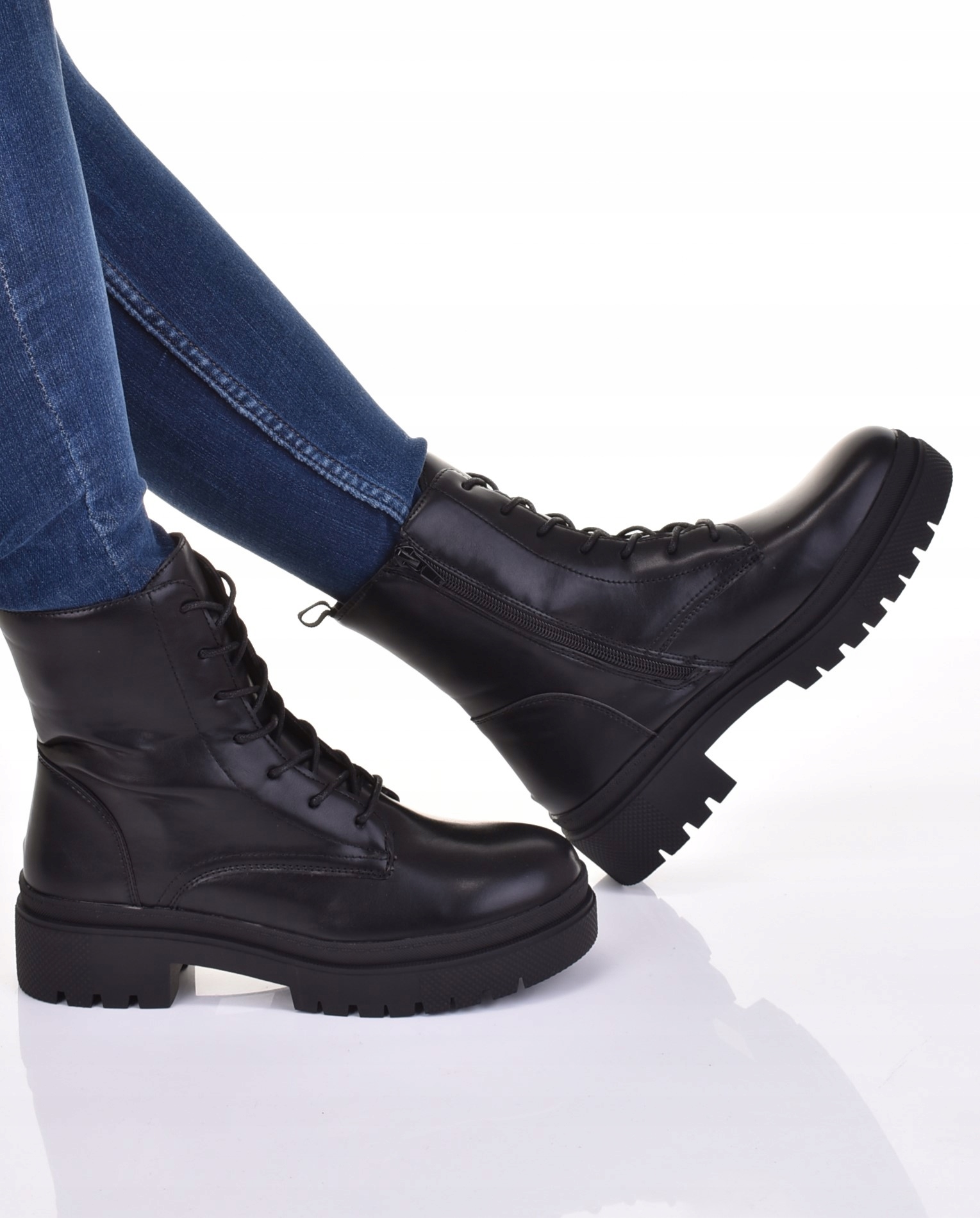 ЧОБОТИНКИ ЖІНОЧІ ШКІРЯНІ ЧЕРЕВИКИ НА ПЛАТФОРМІ НА ШНУРІВЦІ НА БЛИСКАВЦІ ЧОРНІ