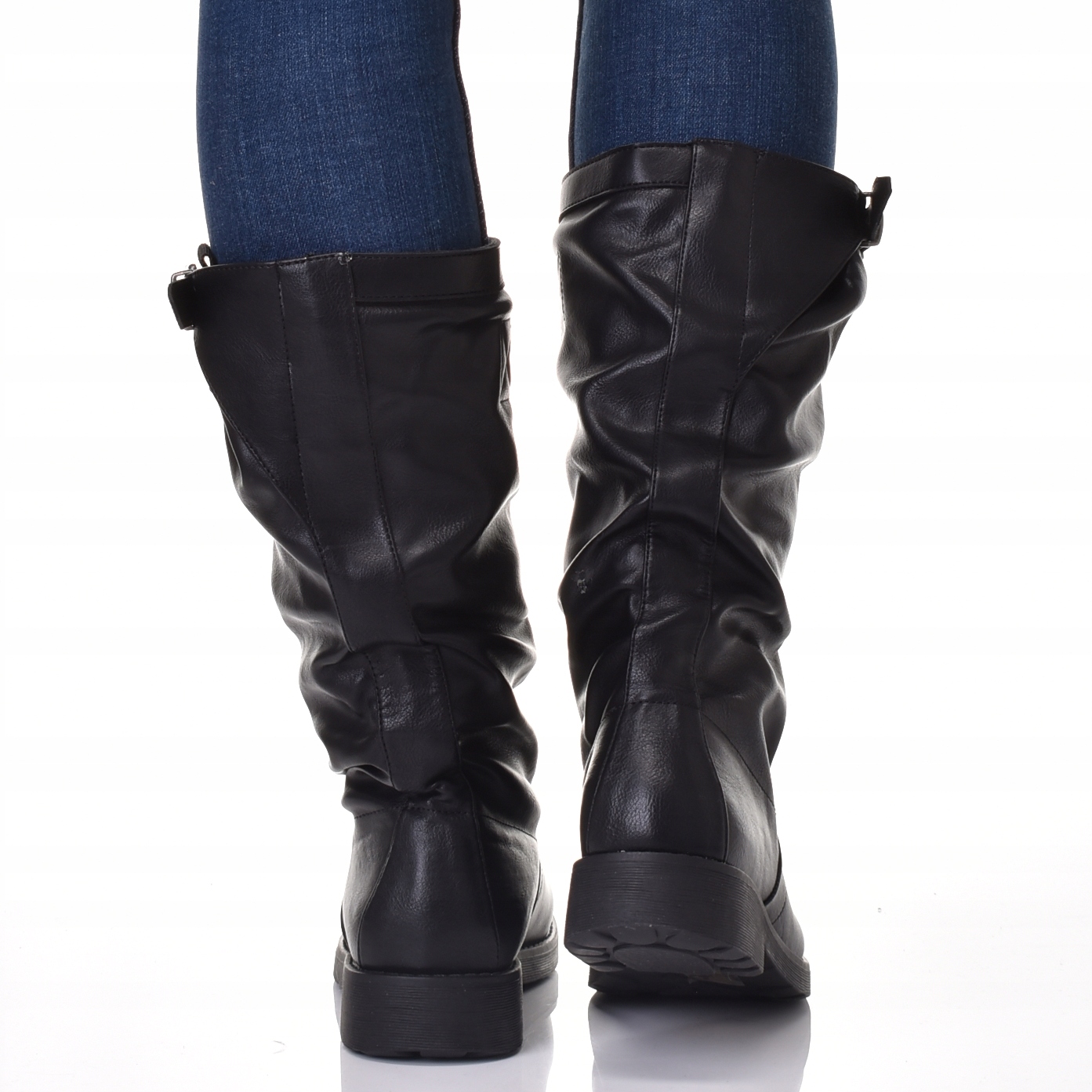 ЧОБОТИНКИ ЖІНОЧІ ШКІРЯНІ ЧОРНІ НА ПЛОСКОМУ КАБЛУСІ