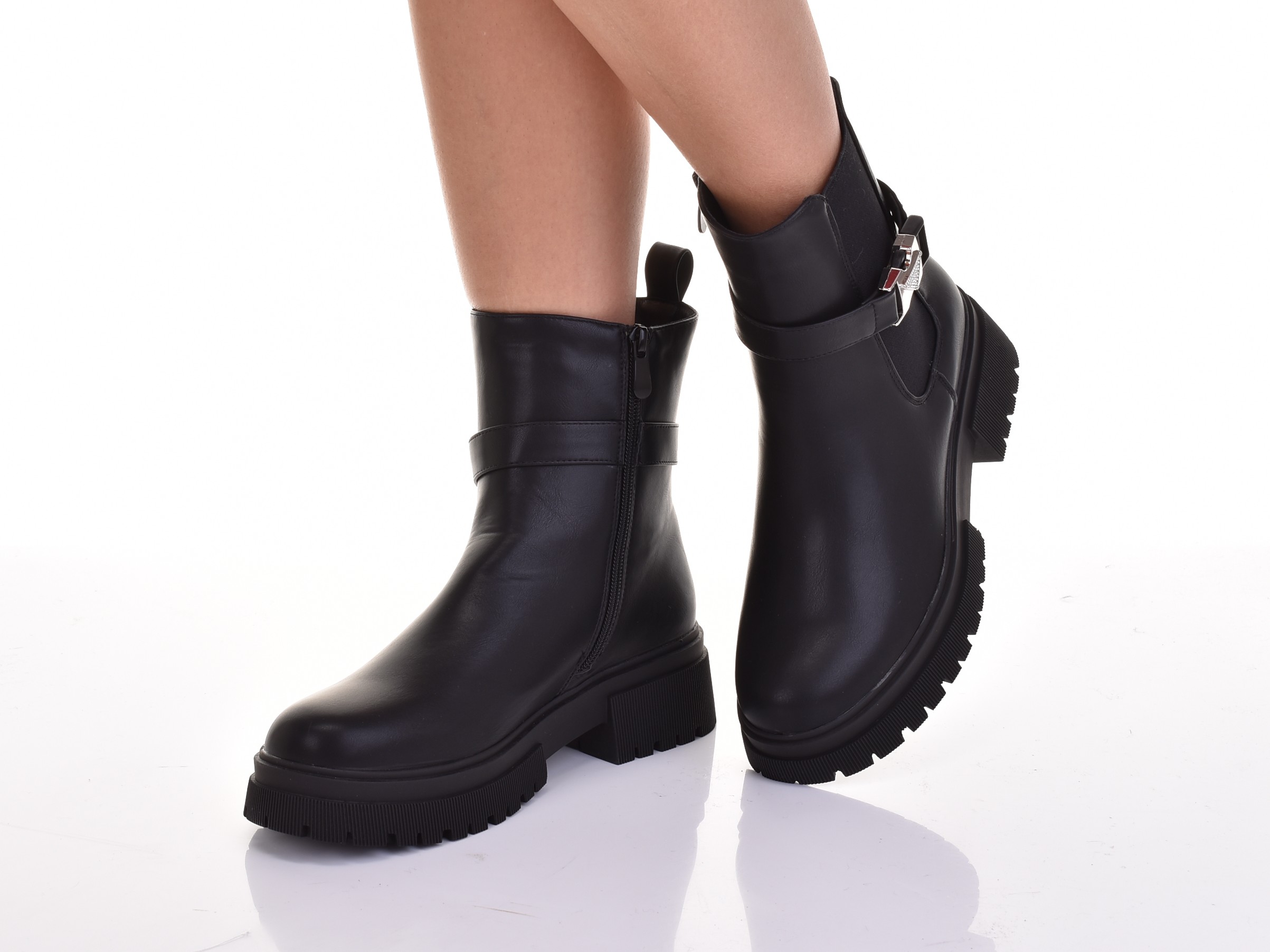 БОТИНКИ ЖЕНСКИЕ УТЕПЛЕННЫЕ НА МОЛНИИ, ЭКО-КОЖА, ЧЕРНЫЕ