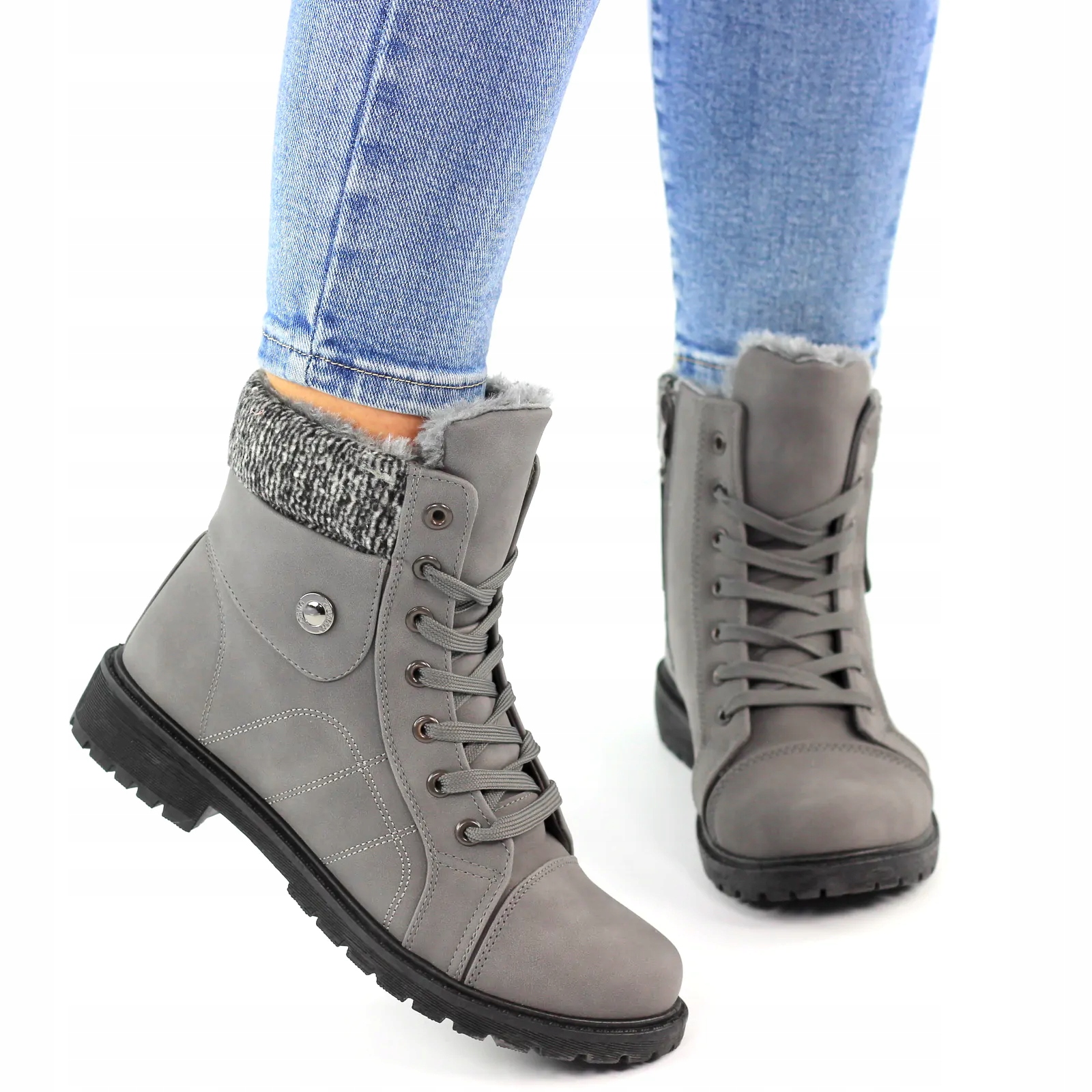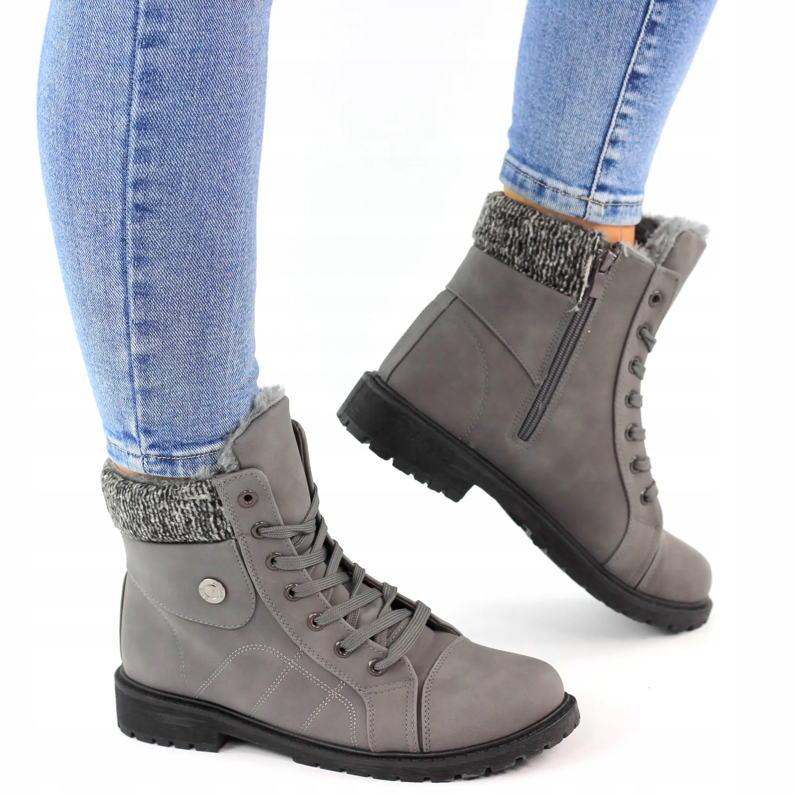 БОТИНКИ ЖЕНСКИЕ УТЕПЛЕННЫЕ ДЕРЕВЯННЫЕ БОТИНКИ TRAPERS МЕХОВАЯ МОЛНИЯ СЕРАЯ ПУГОВИНКА 39