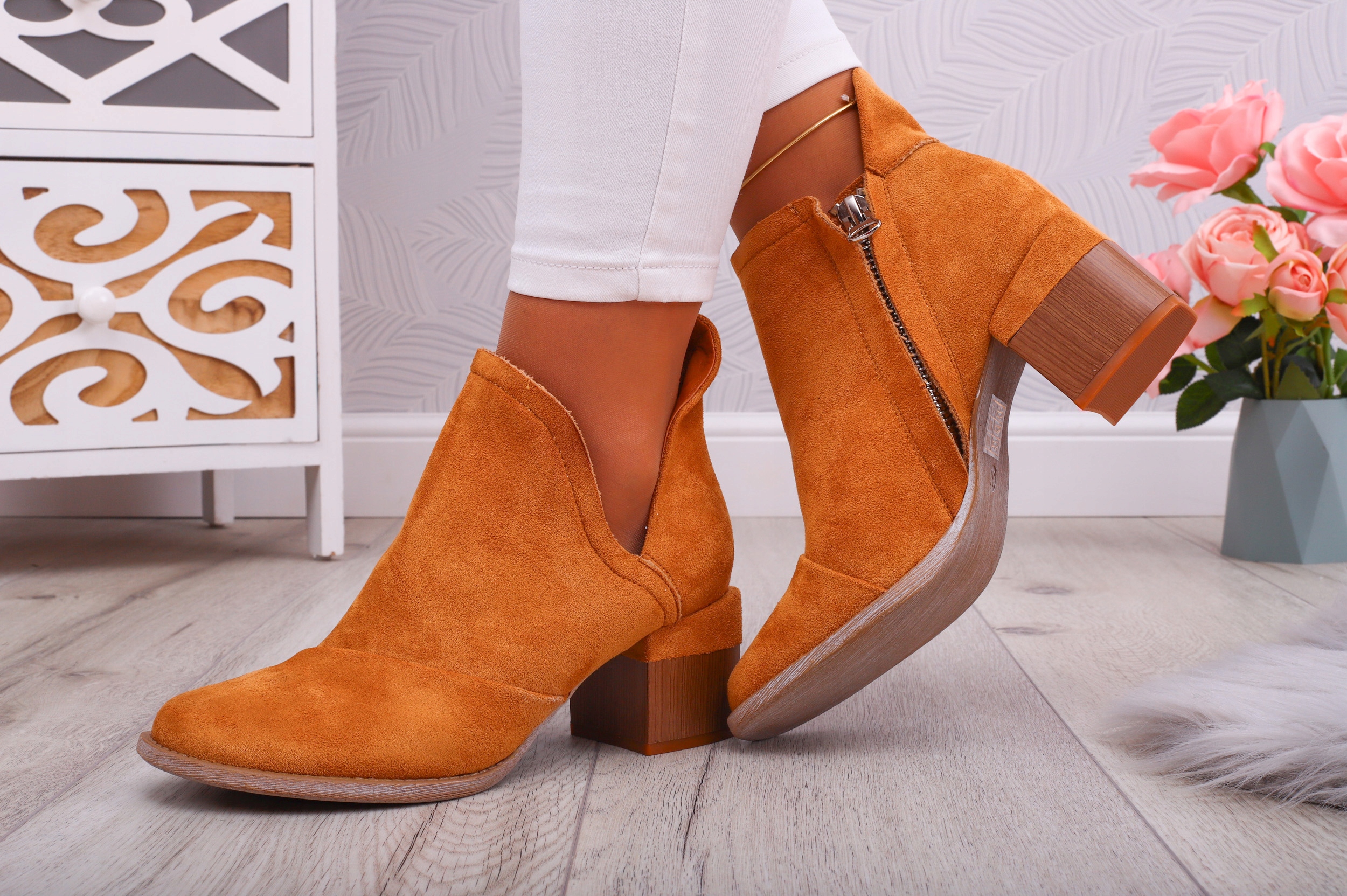 ЧОБОТИНКИ ЖІНОЧІ З ВИРІЗАНИМ КАБЛУКОМ