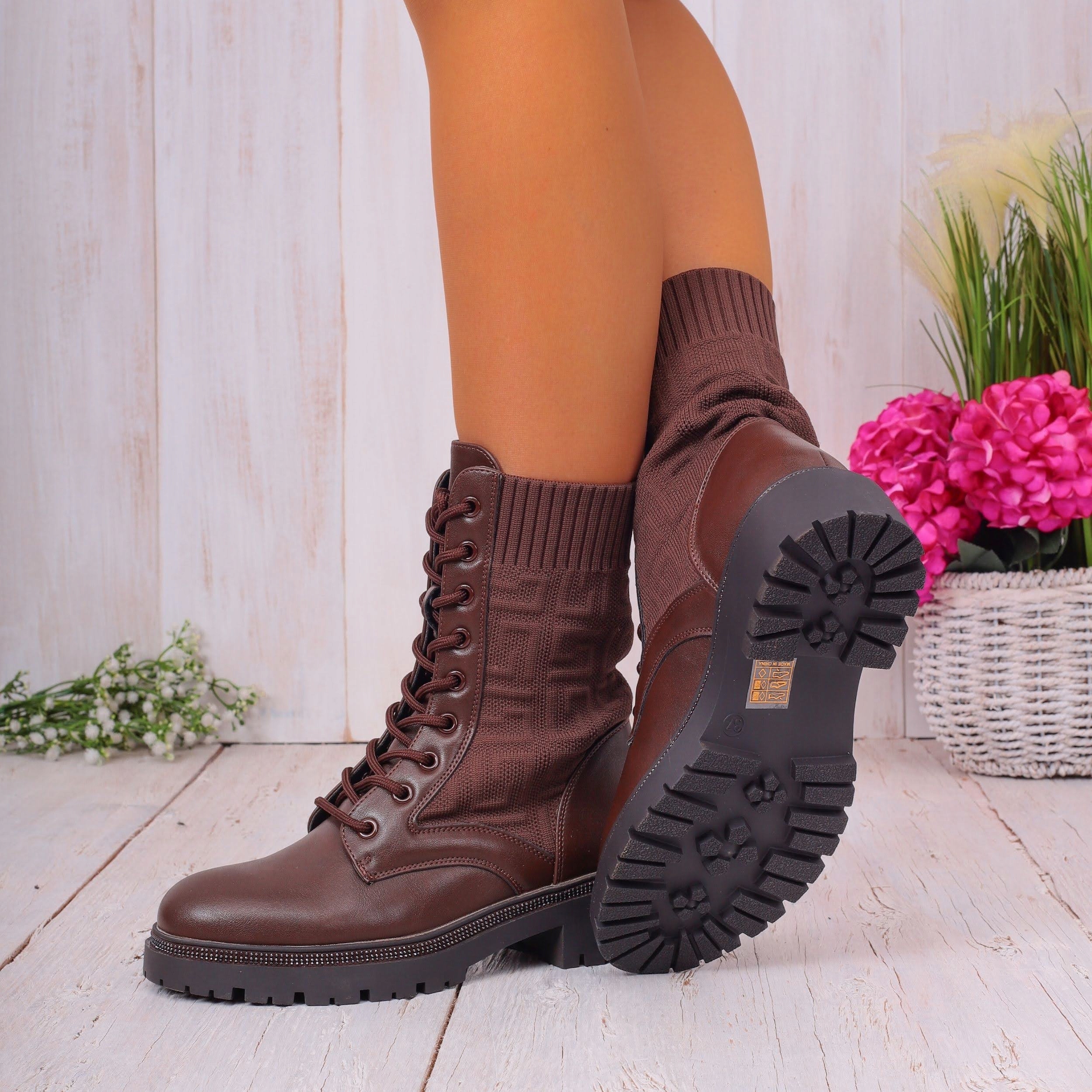 БОТИНКИ ЖЕНСКИЕ ЗИМНИЕ УТЕПЛЕННЫЕ БОТИНКИ КОРИЧНЕВЫЕ ВЫСОКИЕ ТРАПЕРЫ 41