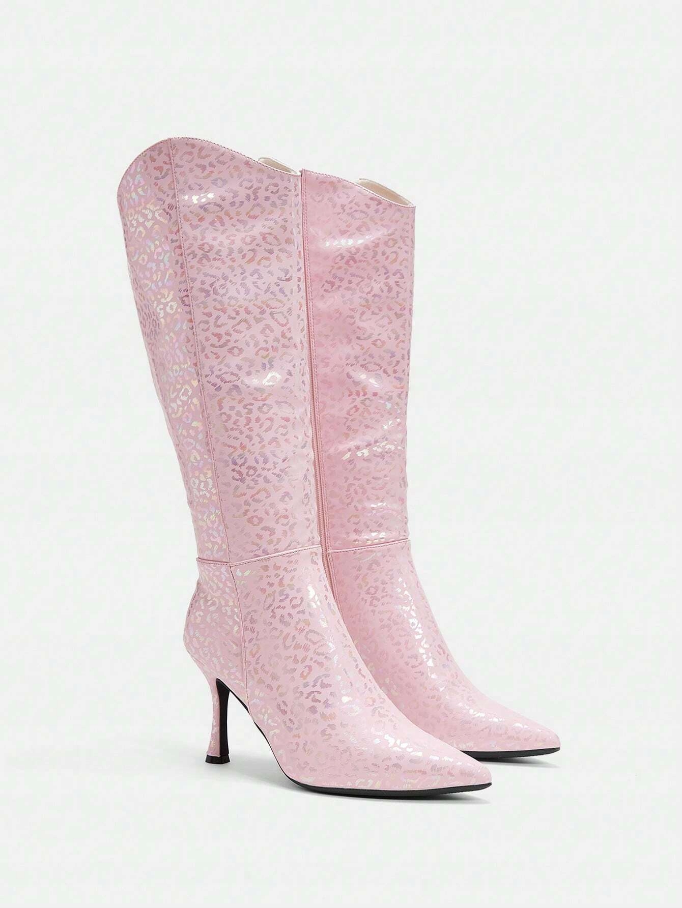 Shein Cuccoo Pink Shiny Boots на леопардовом штифте 37 88222