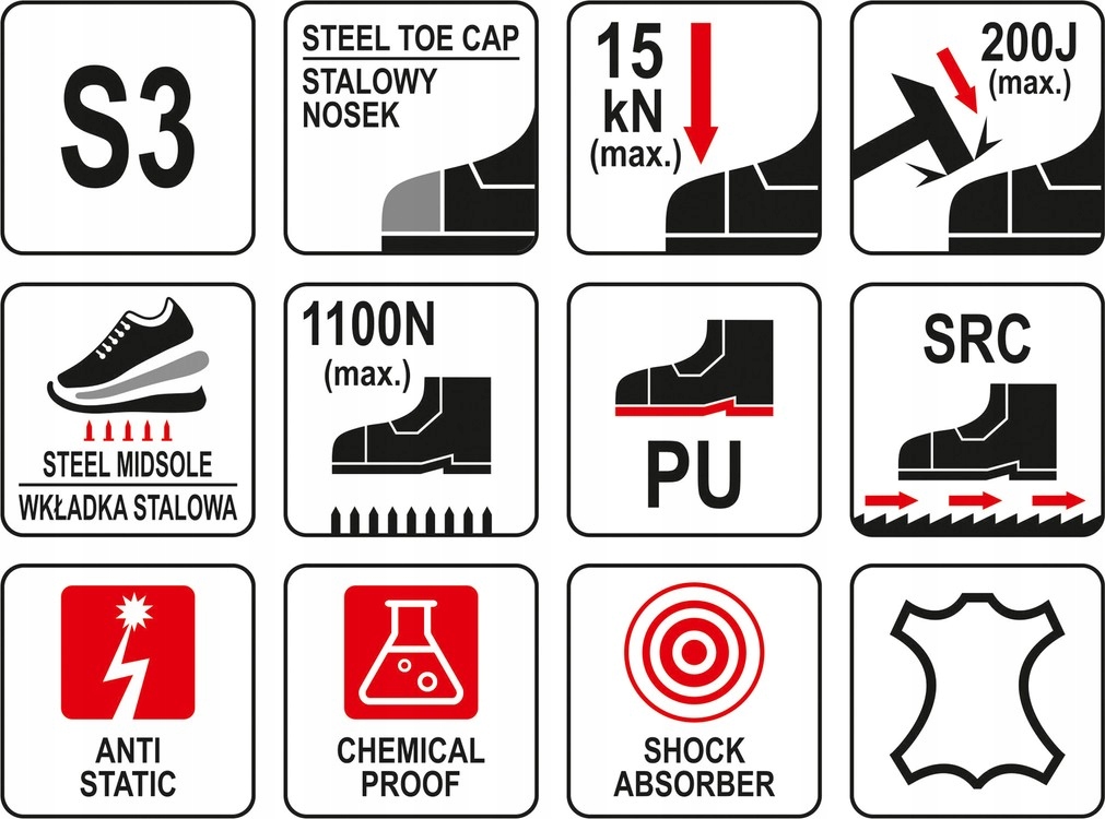 - стальной носок, устойчивый к ударам с энергией до 200 Дж и раздавливанию до 15 кН b>
