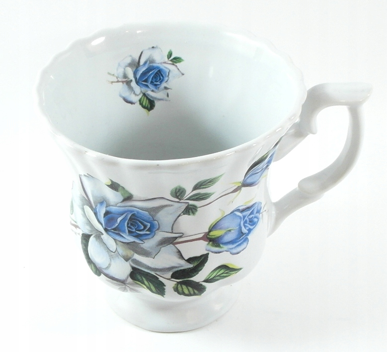 Красивая старинная кружка из белого фарфора, украшенная розами.